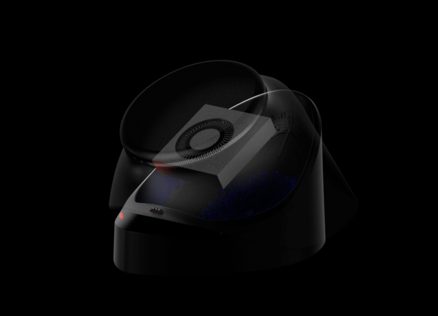 エアロブレスは付属の充電スタンドに置くだけで充電とUV-C除菌、乾燥を行います。これにより表面バクテリアを減らし衛生的なマスクを保ちます。