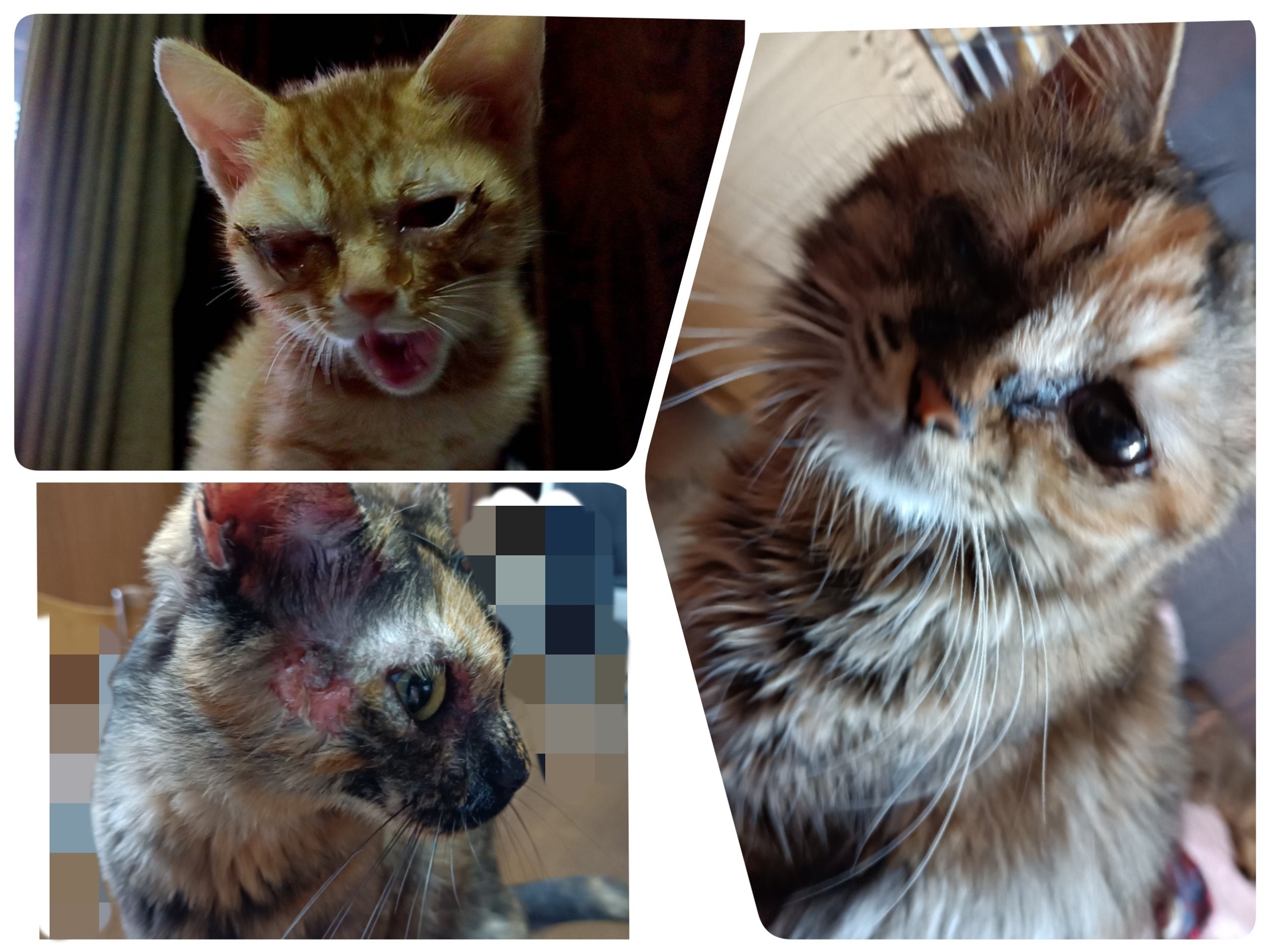 【猫ヘルペス・皮膚病(カビ)・怪我により癒着】