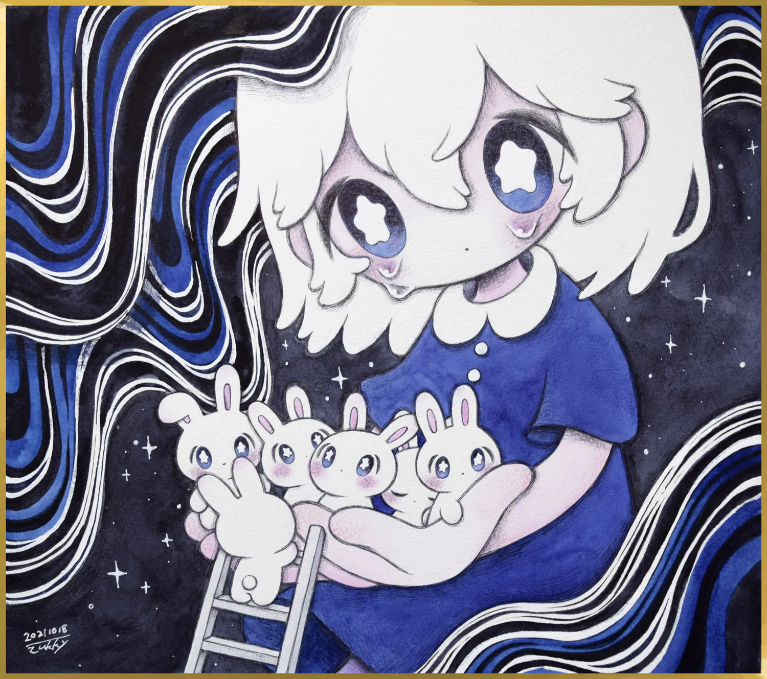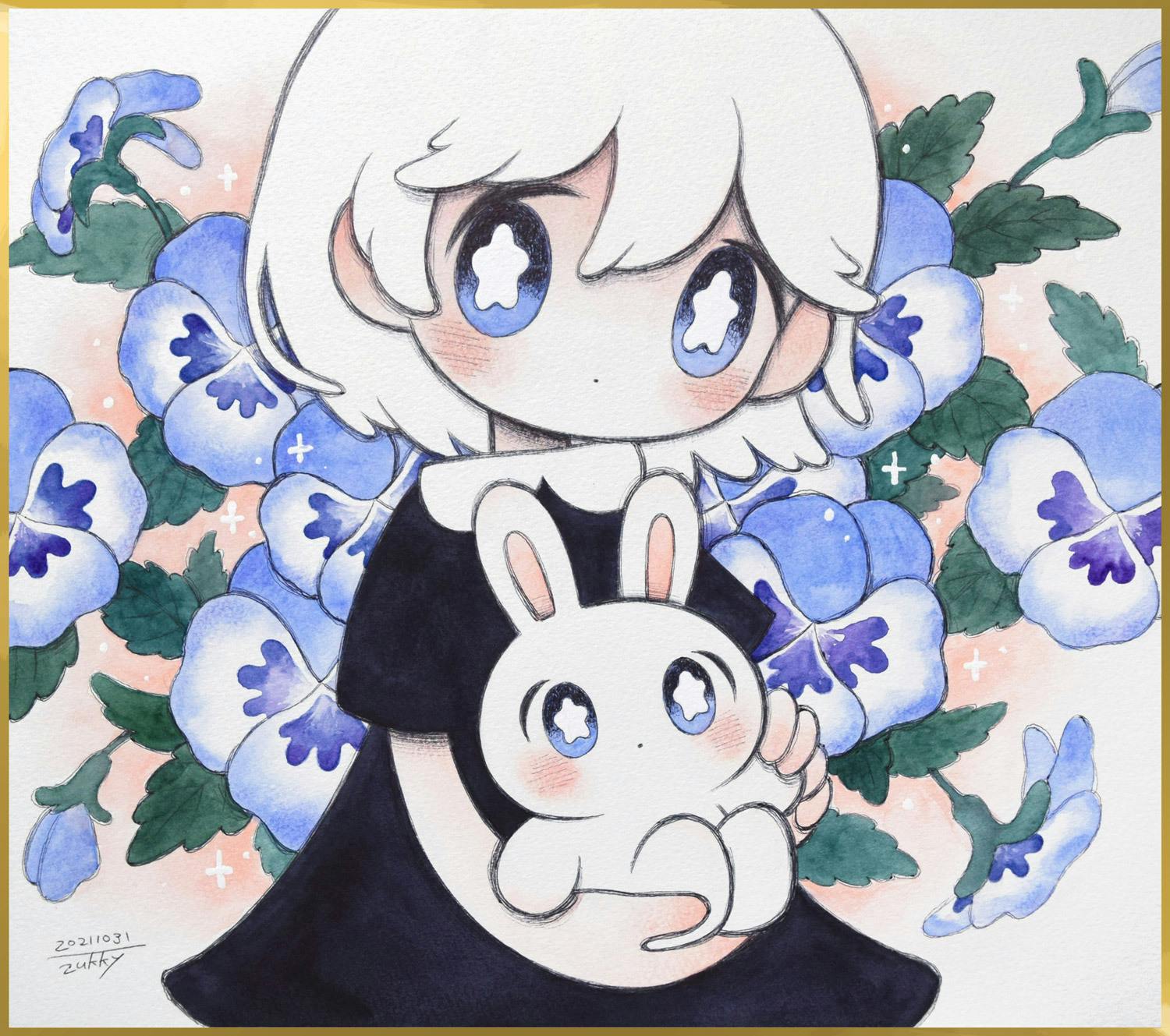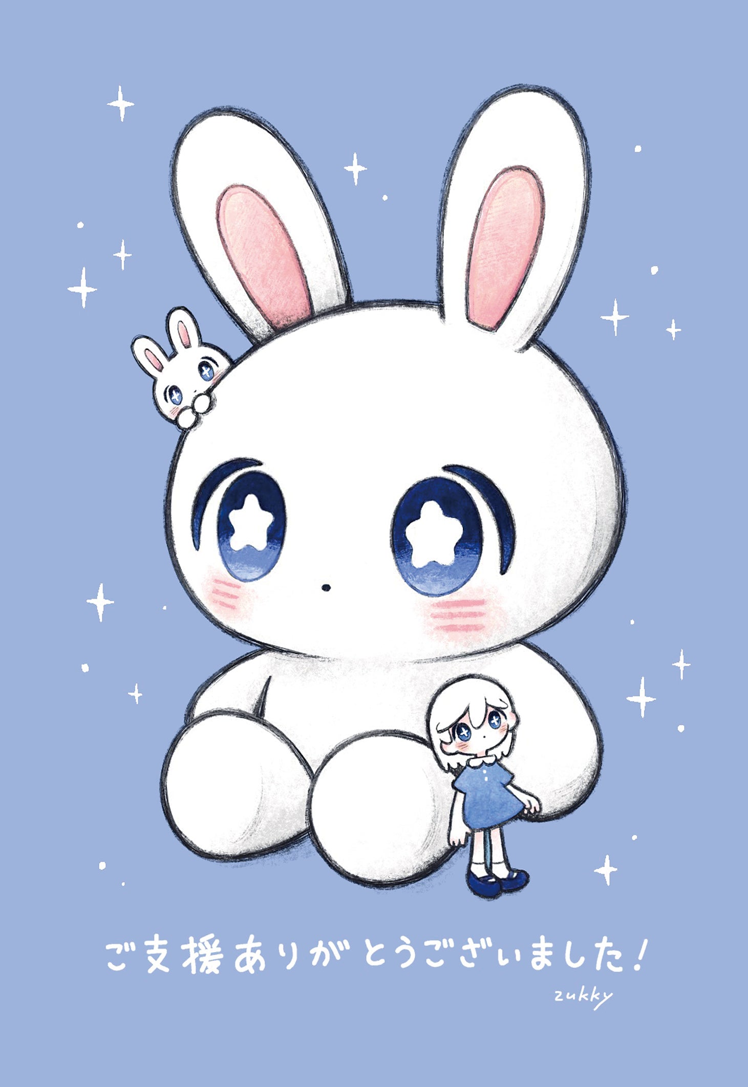 うさぎさんとは、画家zukky(ずっきー)さんが描く女の子のそばにいるキャラクターです。