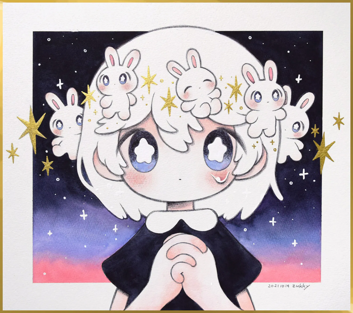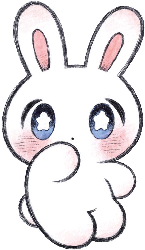 うさぎさんは私の絵の中で、友人や家族やファンの方など、私のことを見守ってくれている人たちの比喩として登場します。