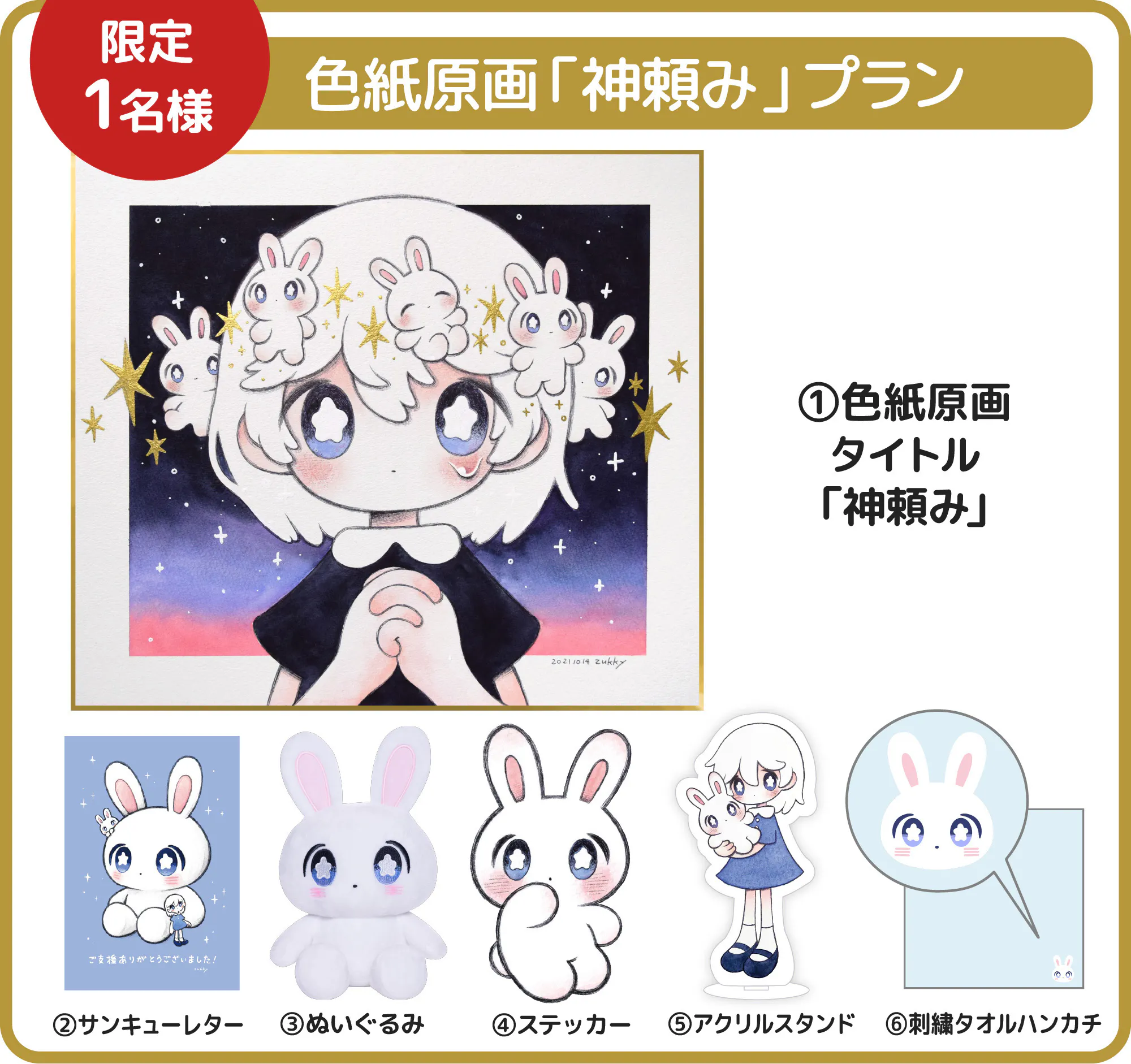 ★zukkyさんの色紙原画「神頼み」が届くプラン(限定1名様)