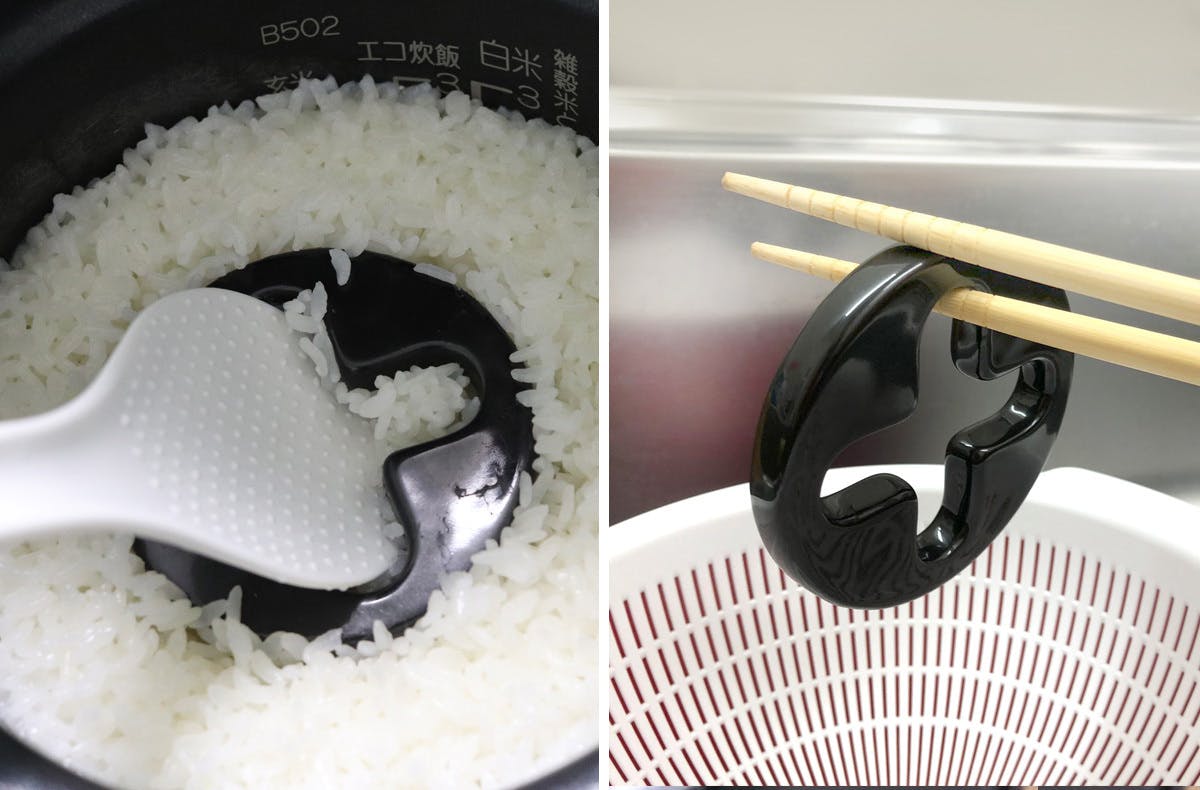 使用する際は、十字穴にしゃもじやお箸を通して簡単に取り出し可能。熱いので取り出す際は十分にお気をつけください。