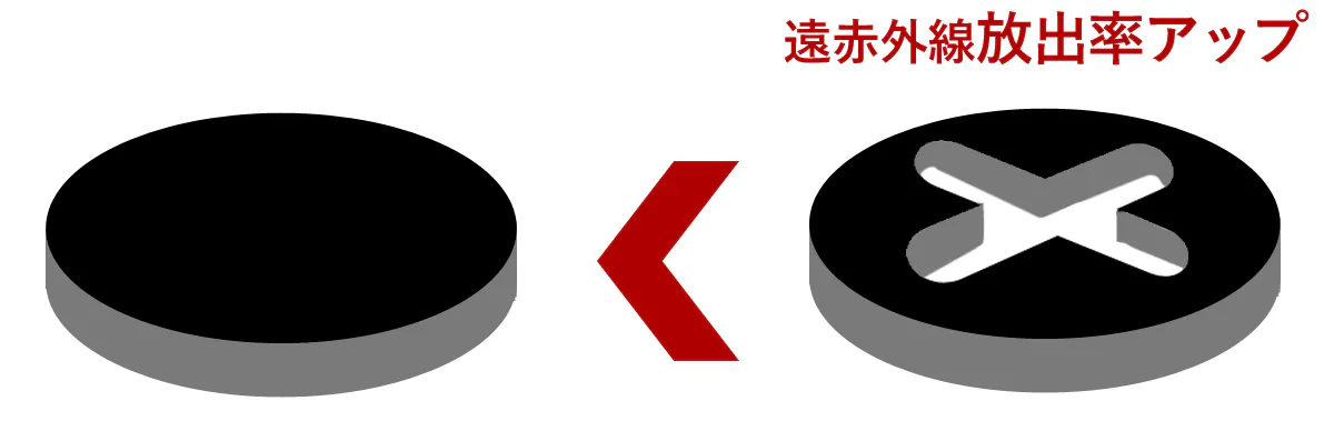 それは、温まりにくい真ん中を空洞にすることにより、熱が伝わる表面積を増やしているのです。それによりセラミックスの温度が上がり、遠赤外線の放出率がアップするのです。