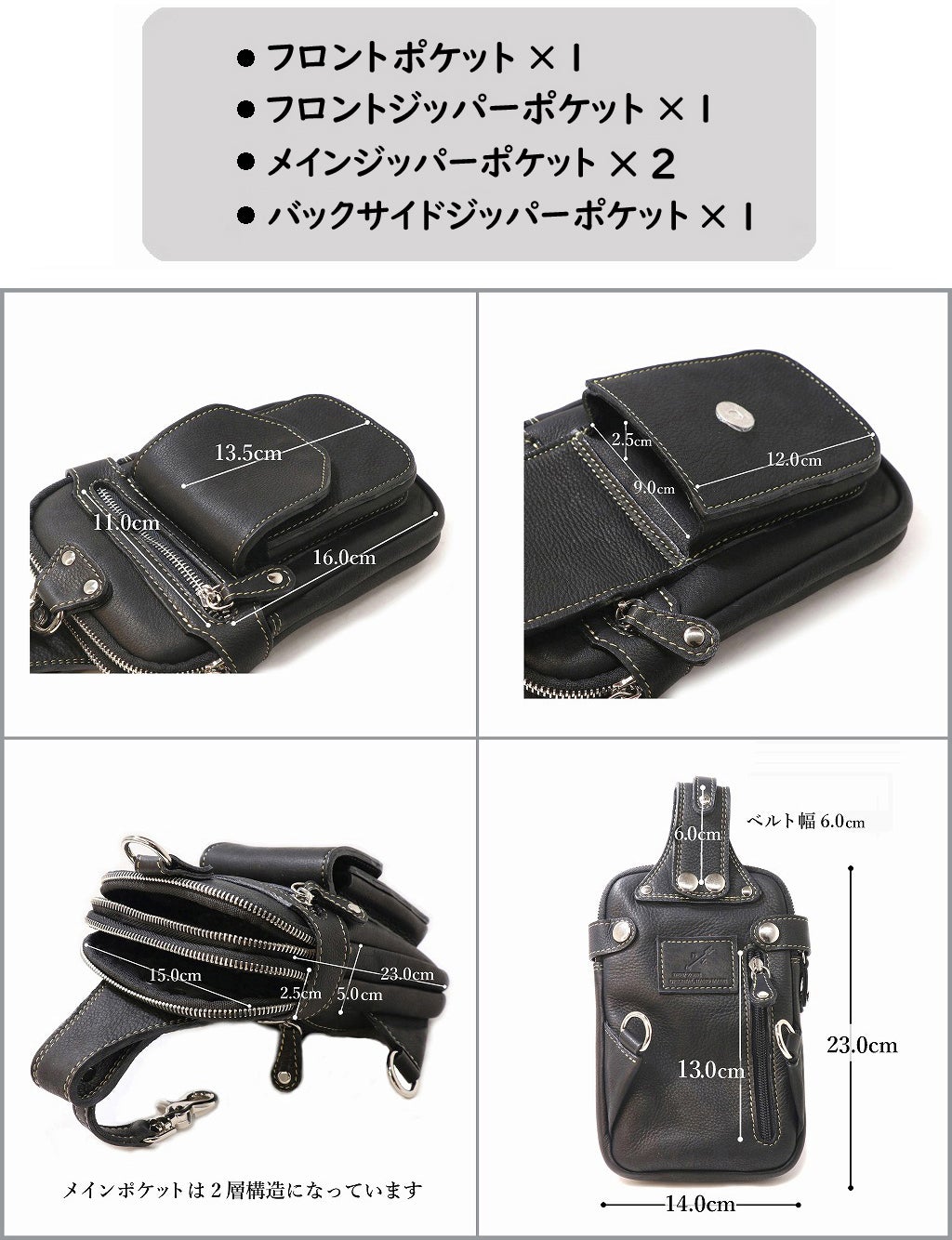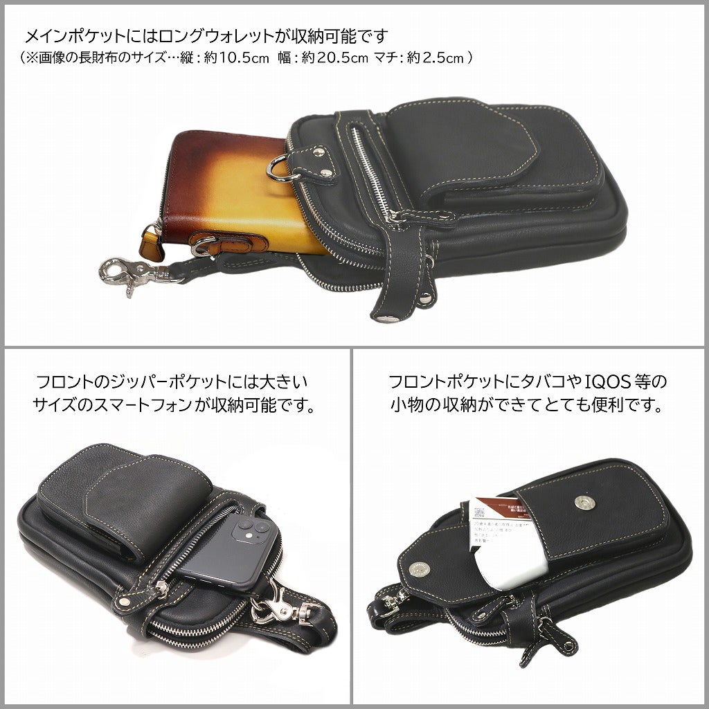 ※小さめのスマートフォンならフロントポケット☝にも収納が可能です。