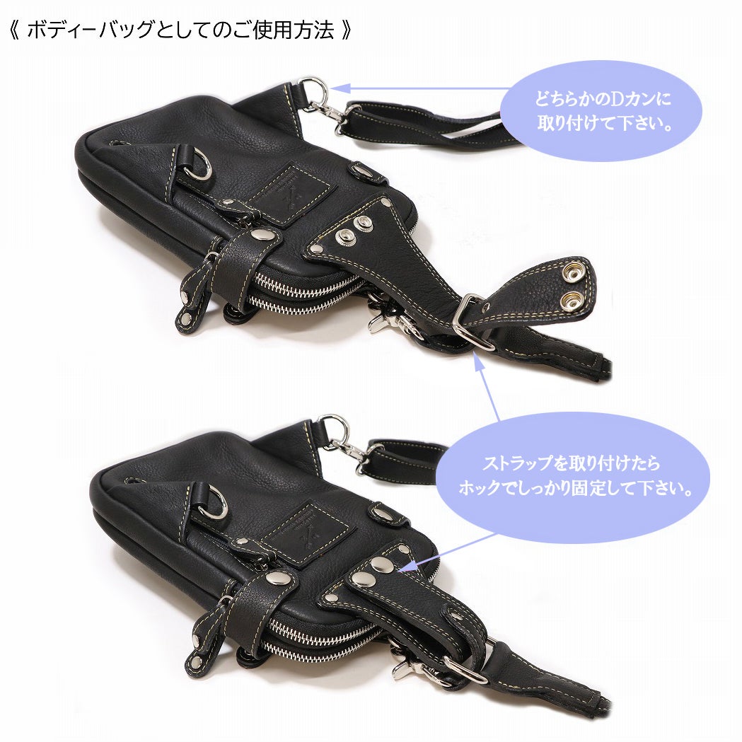 ショルダーストラップを外しベルトに通せばヒップバックとしてもご使用できます♩