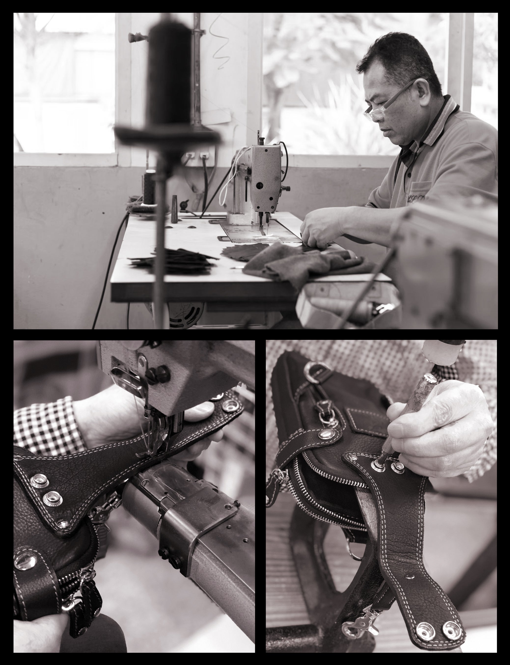 DEEP ZONEでは代表の原田が自ら生産地まで飛び、その目で革選びからカシメやコンチョ等の部品の一つ一つに至るまで丁寧に厳選し、現地の革職人達と時間をかけて一緒に商品を作り上げております。