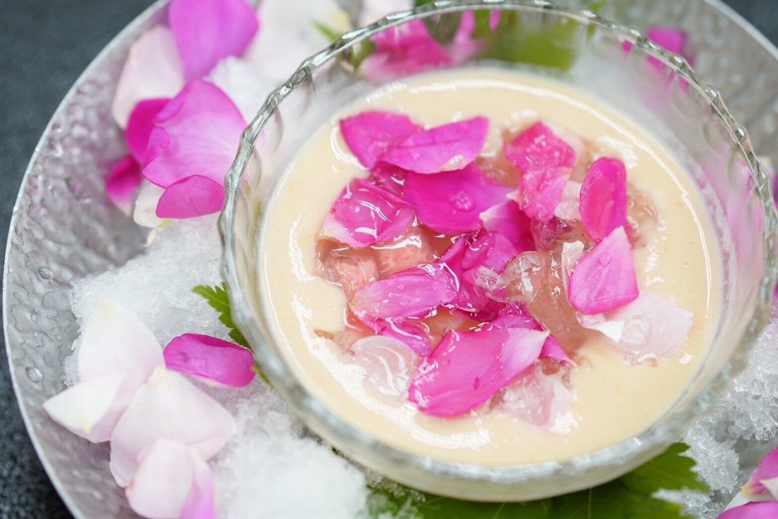 香るバラのしずくは、5〜8倍希釈で炭酸割りやカクテルとして、アイスクリームやヨーグルトにそのままかけても彩り華やかで美味です。