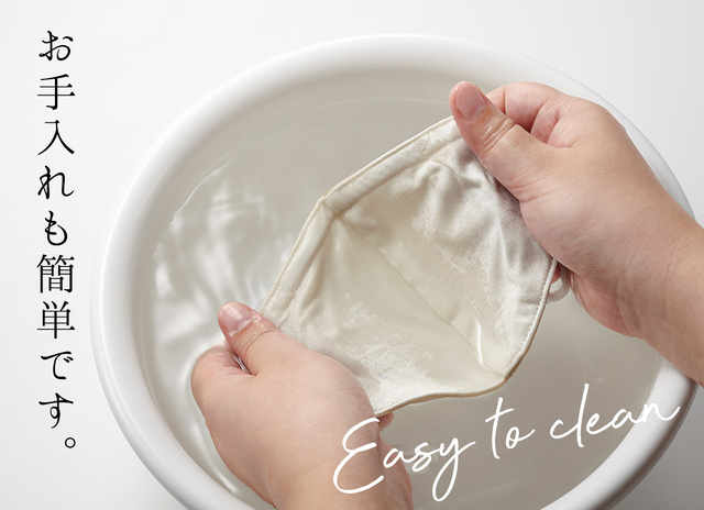 石鹸や中性洗剤を使用して、やさしく手洗いするだけ。50回洗濯しても、中層素材は抗ウイルス性を保持します。