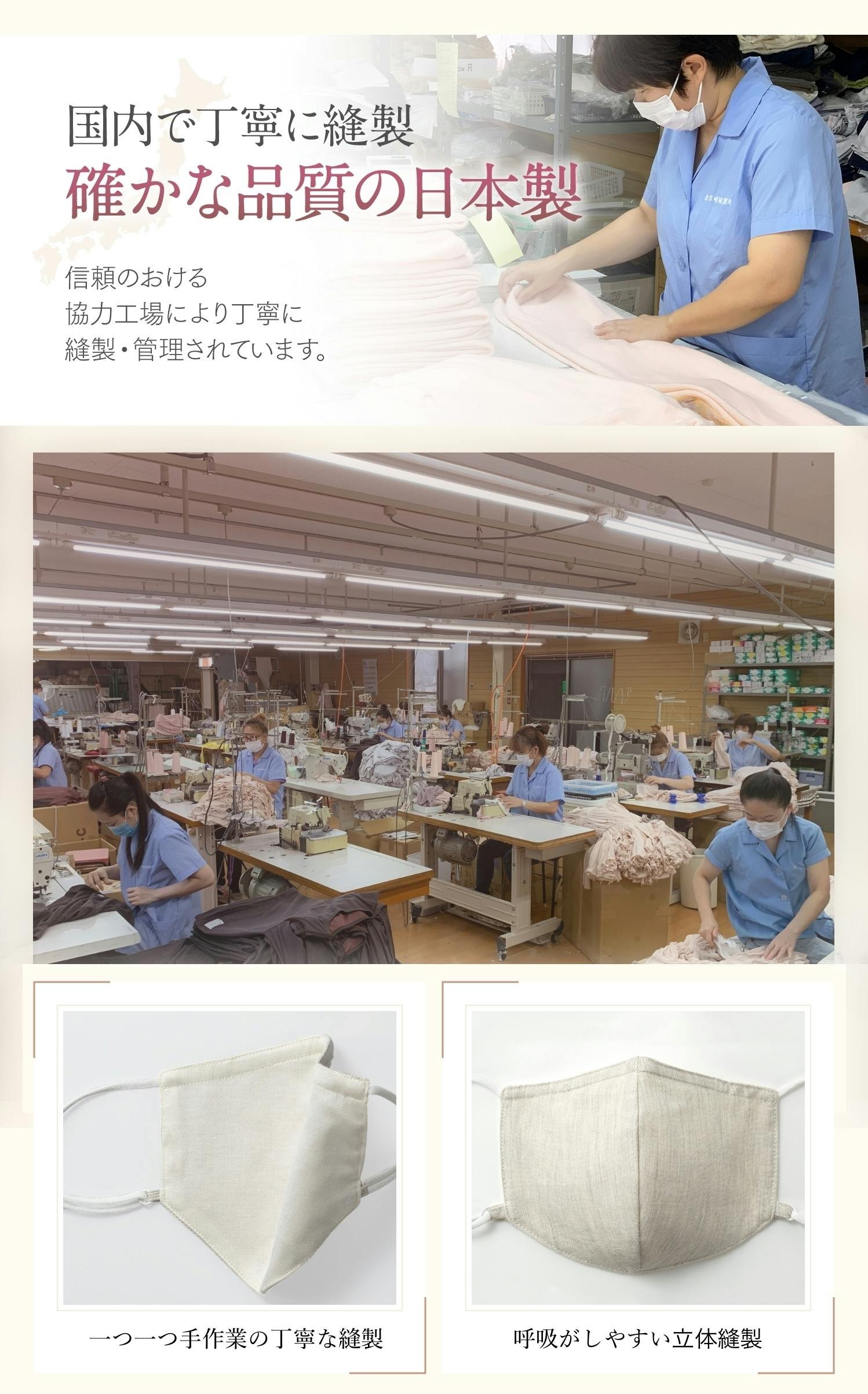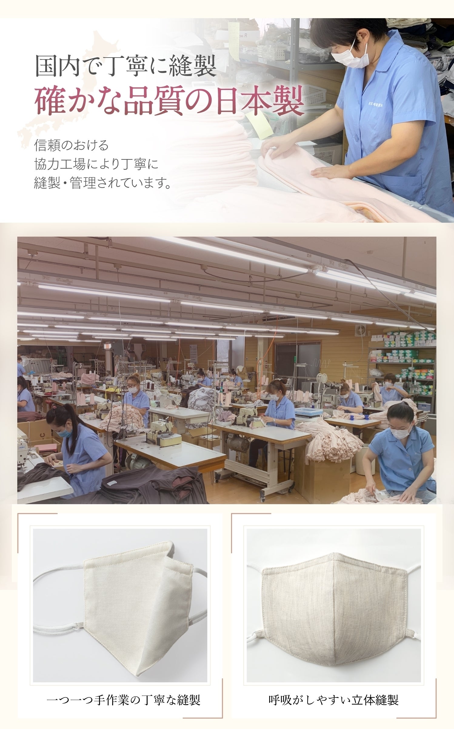 Fabric care MASKは京都にある裁縫工場でひとつひとつ丁寧に作られています。