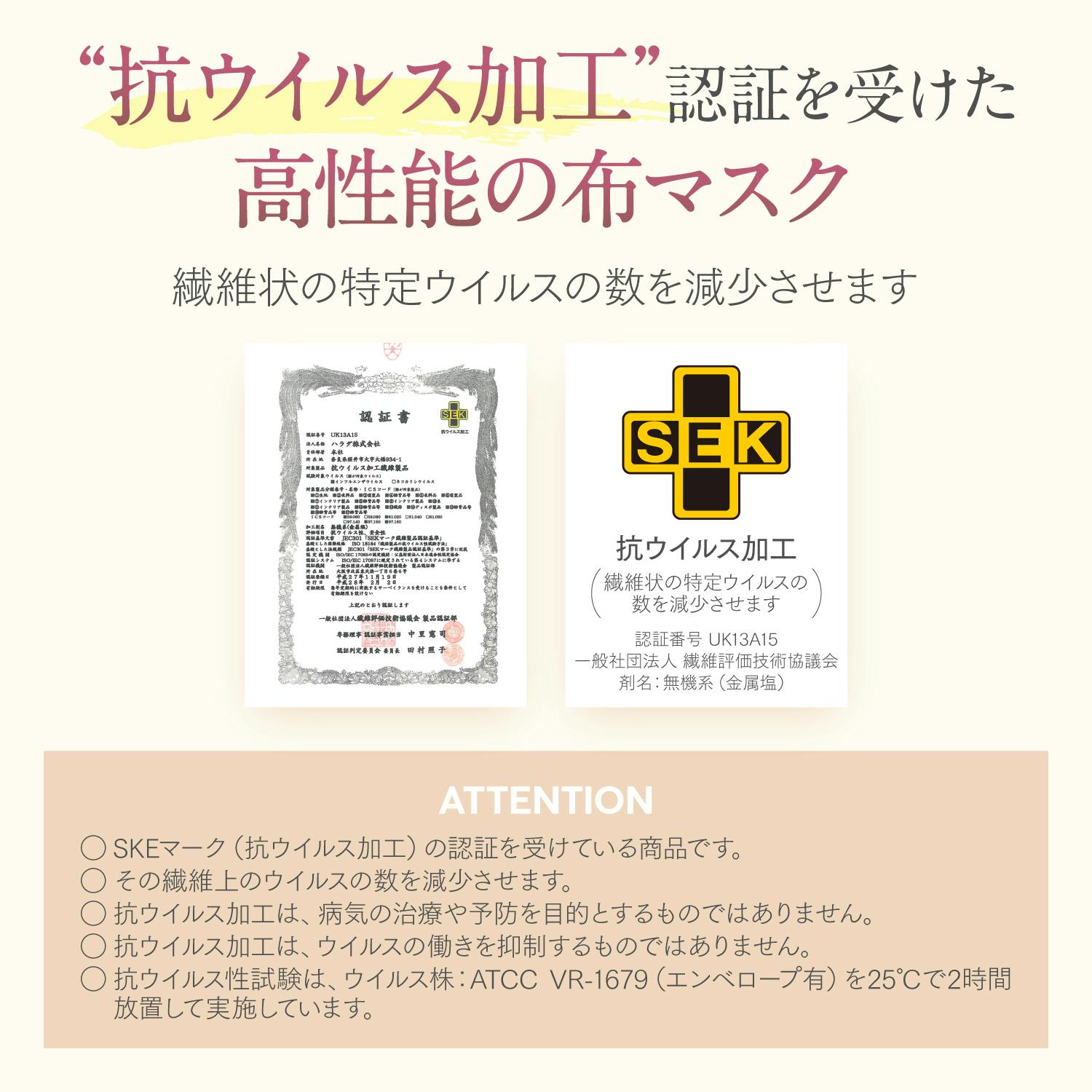 ・中層(中布)に抗ウイルス加工(SEK認証加工)コットン100%素材を使用