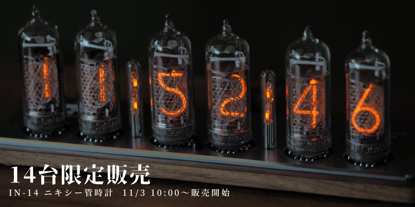 ご紹介をしたニキシー管時計です。早期割引をご用意しております。