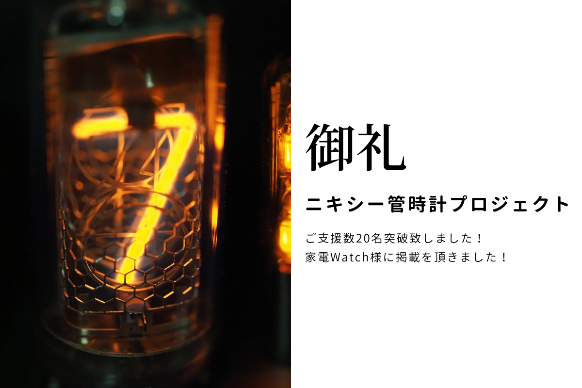 「貴重なニキシー管時計をお届けます!ロシア製 IN-14管を使用した時計です。」プロジェクトオーナーの古川です。