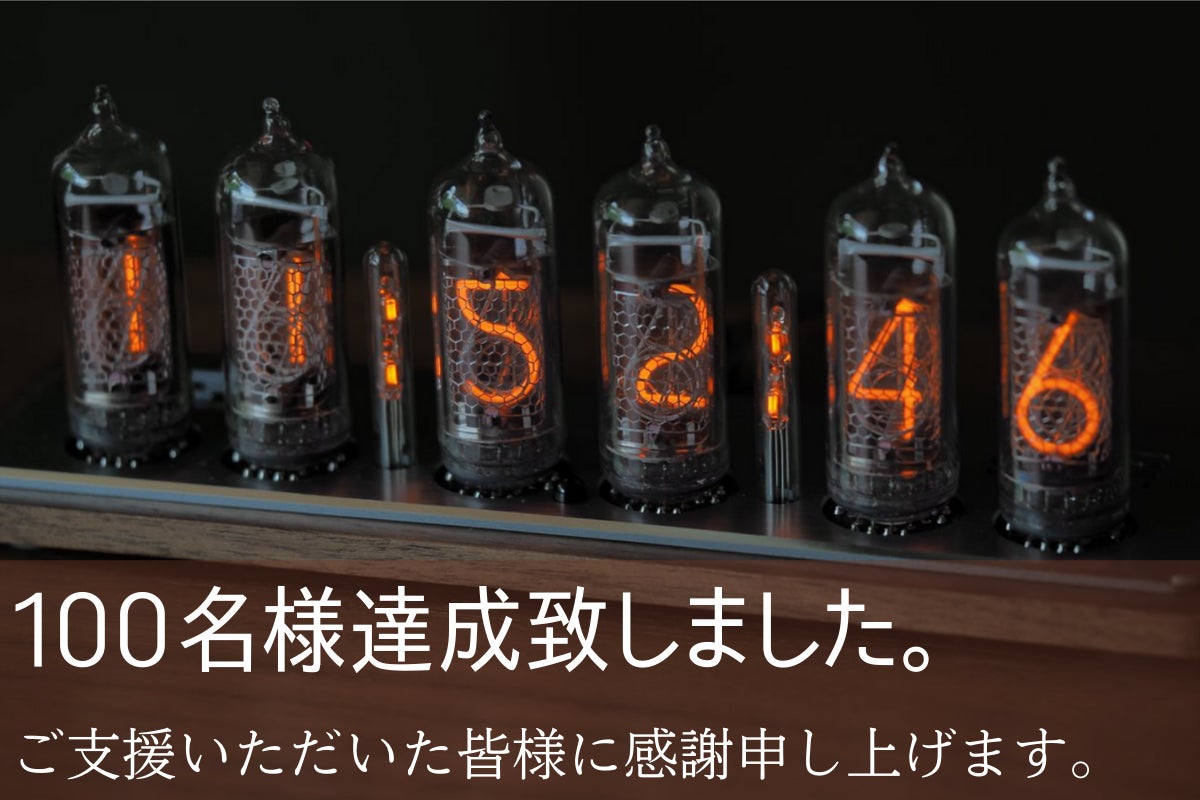 先日の活動報告並びにページ内にも記載をさせていただいておりますが、ニキシー管時計100名様以降のリターン配送はプロジェクト終了後、3ヶ月程度お時間を頂く見込みです。年明けになる可能性がございますのでご了承くださいませ。