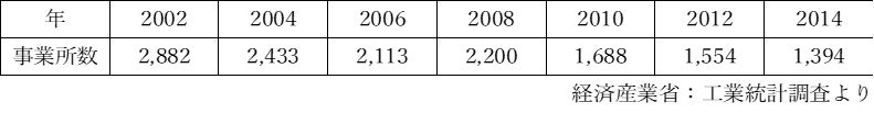 上の表が鞄産業の国内の事業所数ですが12年の間に半数以下に、コロナ禍における現在では更に加速して減少していることが考えられます。