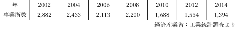 上の表が鞄産業の国内の事業所数ですが12年の間に半数以下に、コロナ禍における現在では更に加速して減少していることが考えられます。