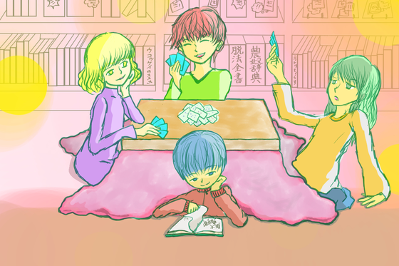 こんな感じで1つのコタツを皆で共有したりとか