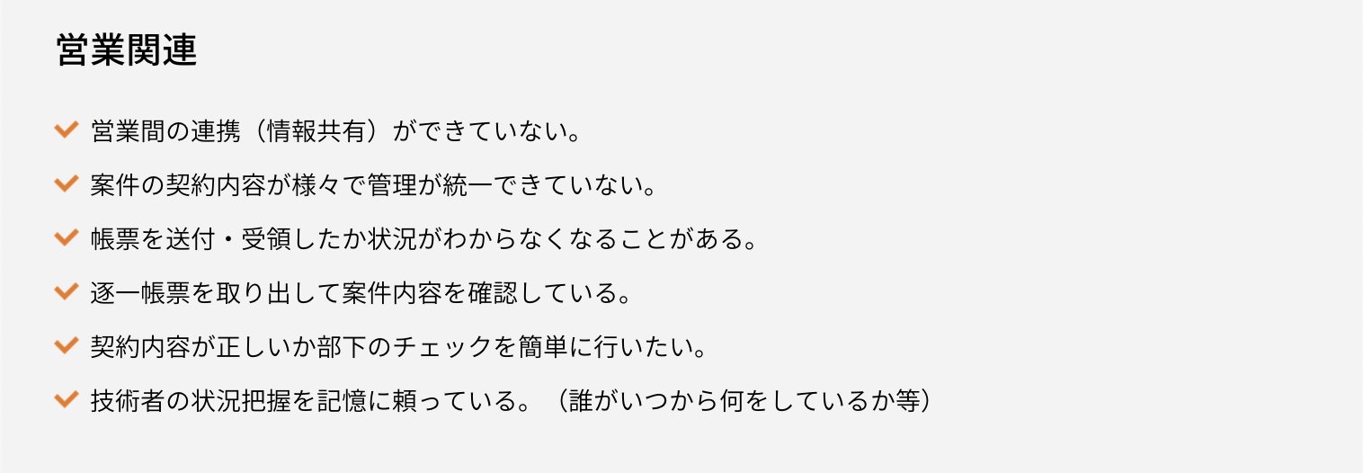 エクセルや単品のソフトではできなかった情報の一元管理。