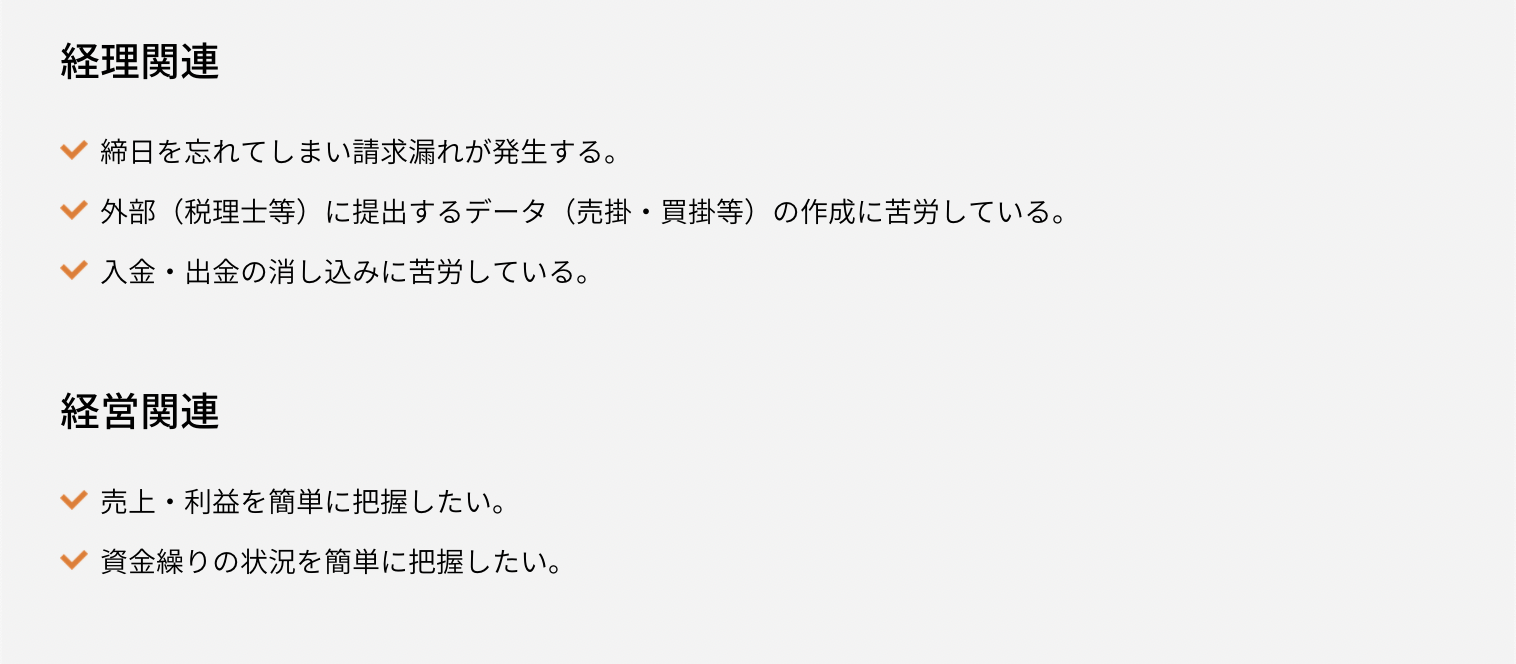 人事や経理でバラバラの管理ソフトを使っているため全体把握ができない