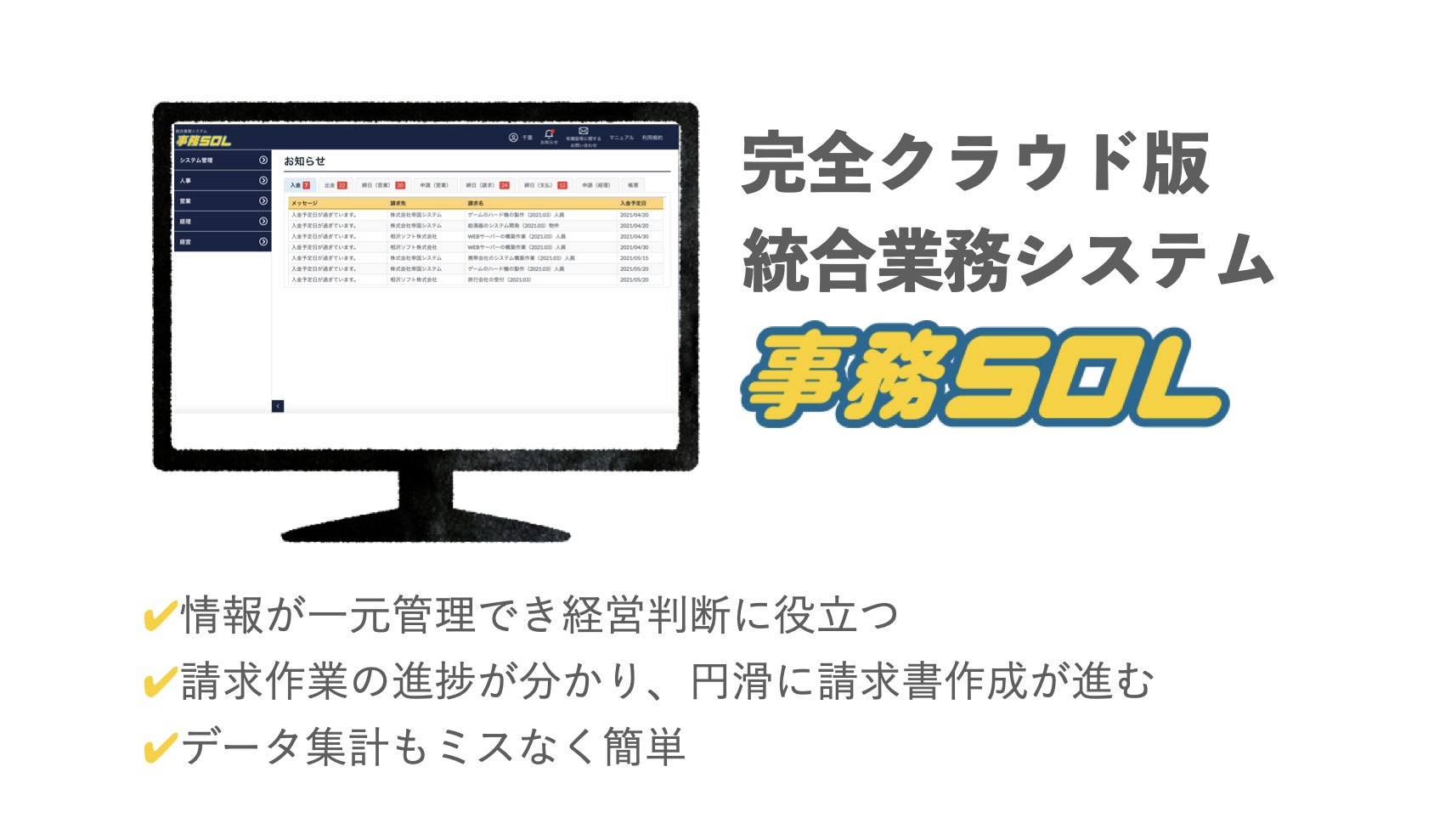 そんな企業様向けの完全クラウド版統合業務システム(ERP)「事務SOL」をご紹介します!