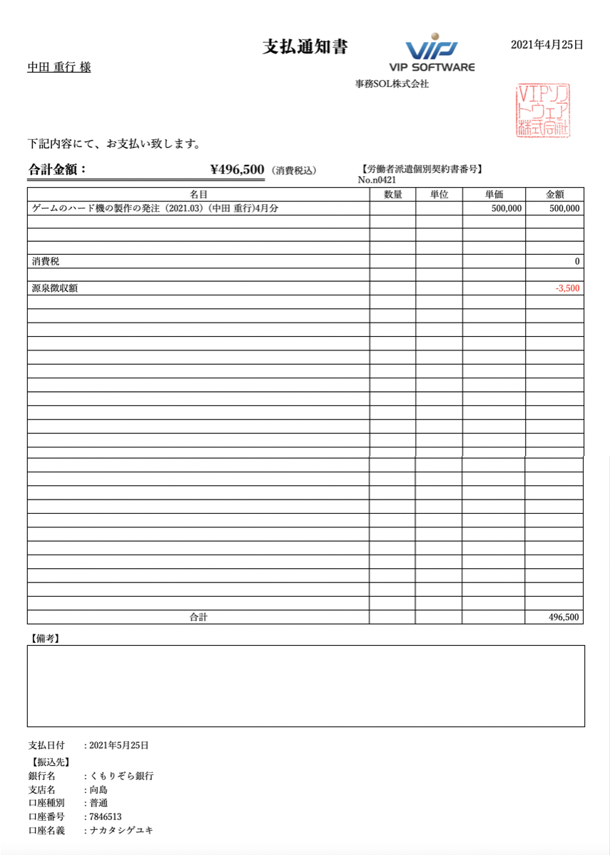 帳簿(見積書、契約書、請求書、売掛帳、買掛帳、給与一覧、経費一覧など)をボタン一発で出力可能です。