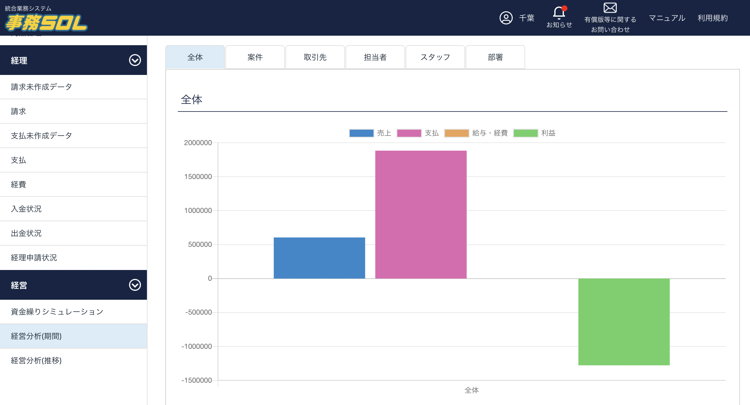 事務作業の結果としてできたデータを経営判断の参考データとして顧客ごとの売上比率や営業マンごとの売上、利益比率なども参照可能です。