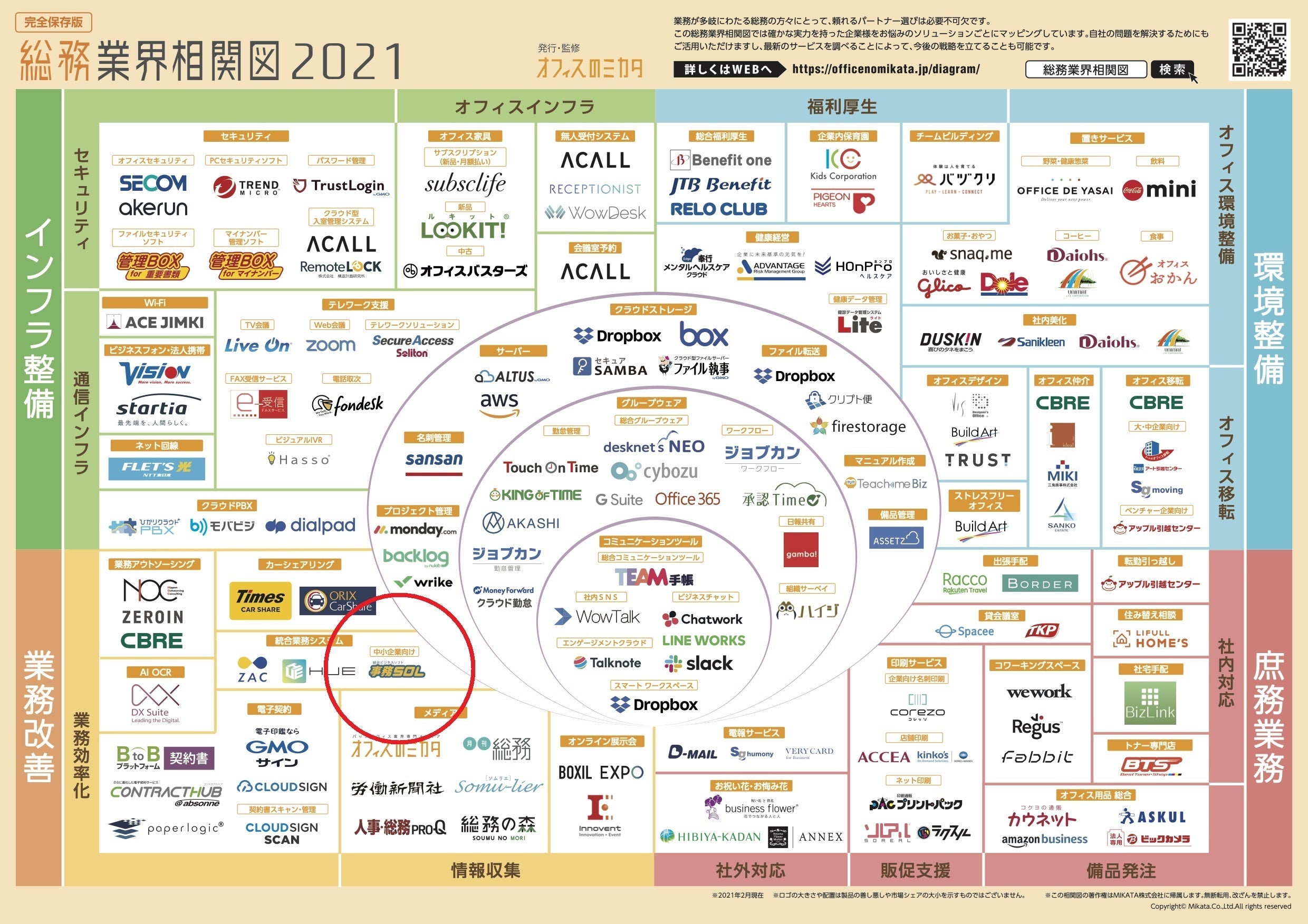 この情報を1枚のマップで表現する「総務業界相関図2021」に「事務SOL」が掲載されました。
