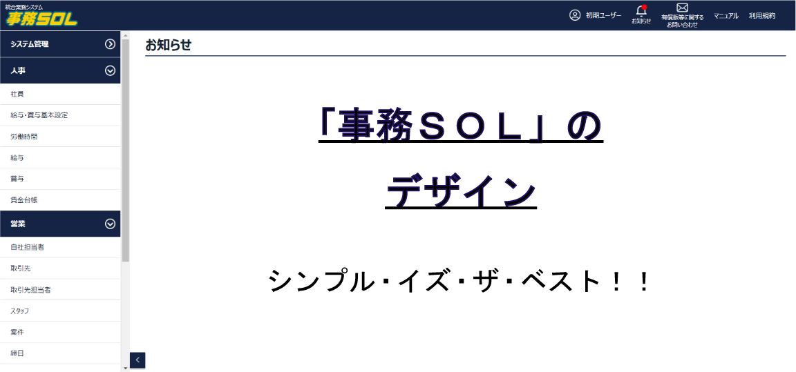 意識せずに業務フローを把握できて、直感的に使える「事務SOL」は、デジタルが苦手な方にこそ使ってほしいERPです!
