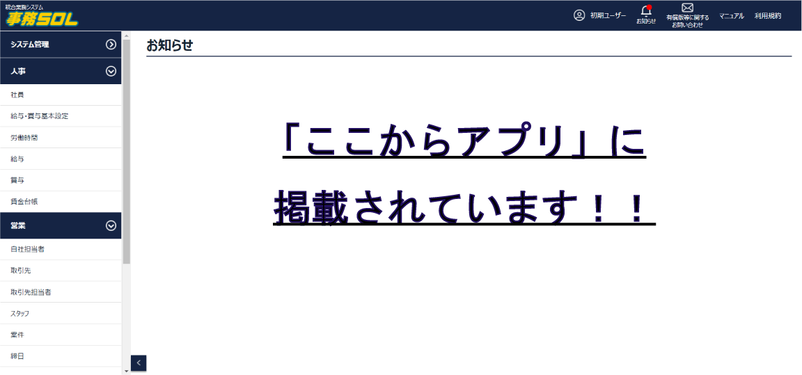 その「ここからアプリ」に先月10月27日から「事務SOL」も掲載されています。