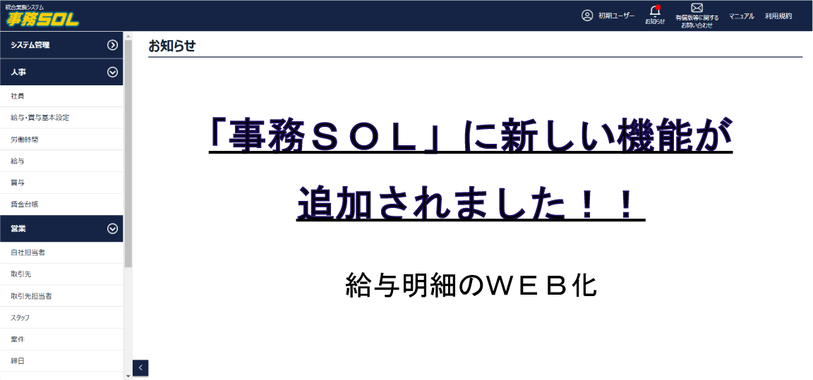 「事務SOL」に社員情報が登録されている方は事務SOL社員ページにログインすることで、自分の給与データを見ることができます。
