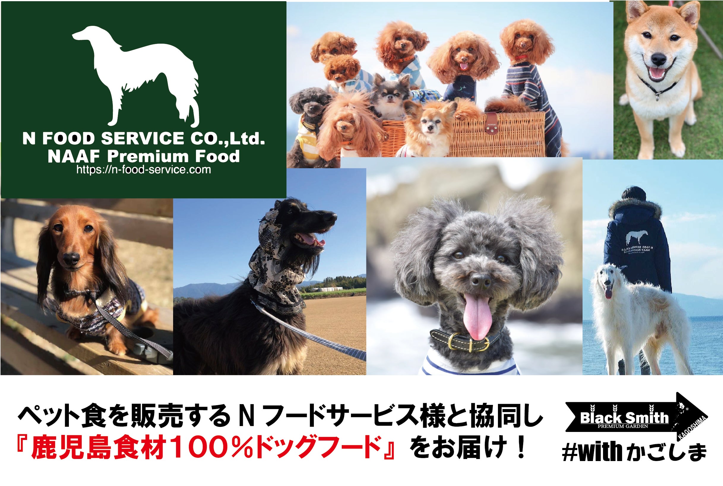 そして、ペット共同カフェテラスの新設にあたり『ペット食も充実させたい!』という思いから、鹿児島の食材を扱い、無添加のペット食にこだわる鹿児島の企業【Nフードサービス株式会社】様とタイアップし『ペット共同利用可能なカフェテラスプロジェクト』を実現することができました!