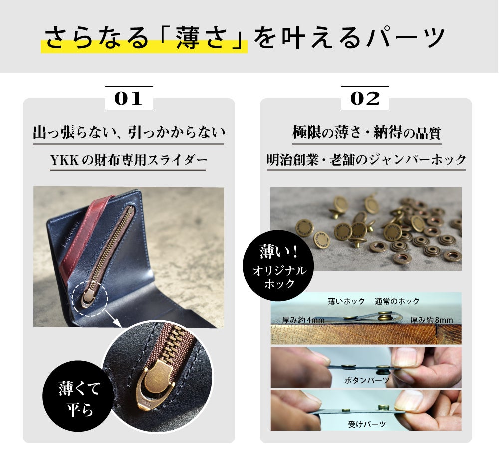 ■ファスナー:YKK社「EXELLA(エクセラ)」(財布専用スライダー)