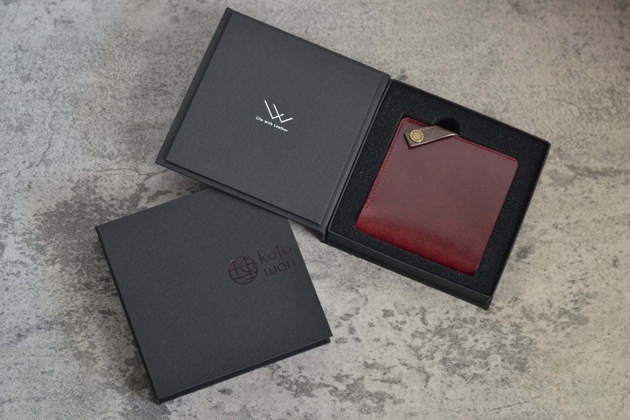 この箱を開けた方が、【理 kotowari®】の折財布と新しいストーリーを紡ぎ出していただけるよう願いを込めました。