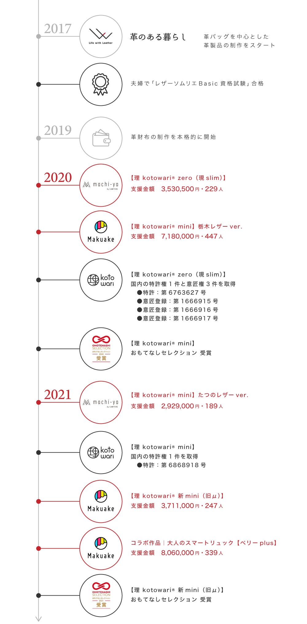 理 kotowari®シリーズのミニ財布では、【理 kotowari® slim】【理 kotowari® mini】でそれぞれ国内の『特許』を取得。【理 kotowari® slim】は、国内の意匠権も3件取得しています。