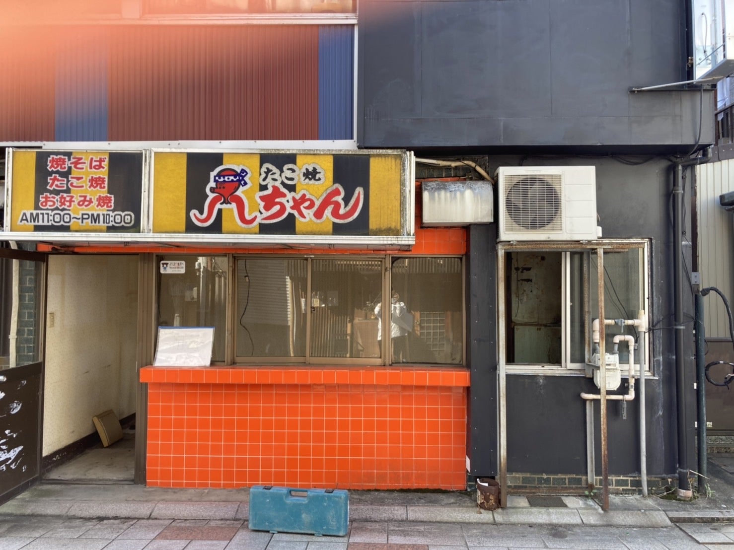 私たちが物件を見に行ったその時も、しっかりと「たこ焼き」の看板が残っていて、これをスイーツ店にできるの?と半信半疑でした。