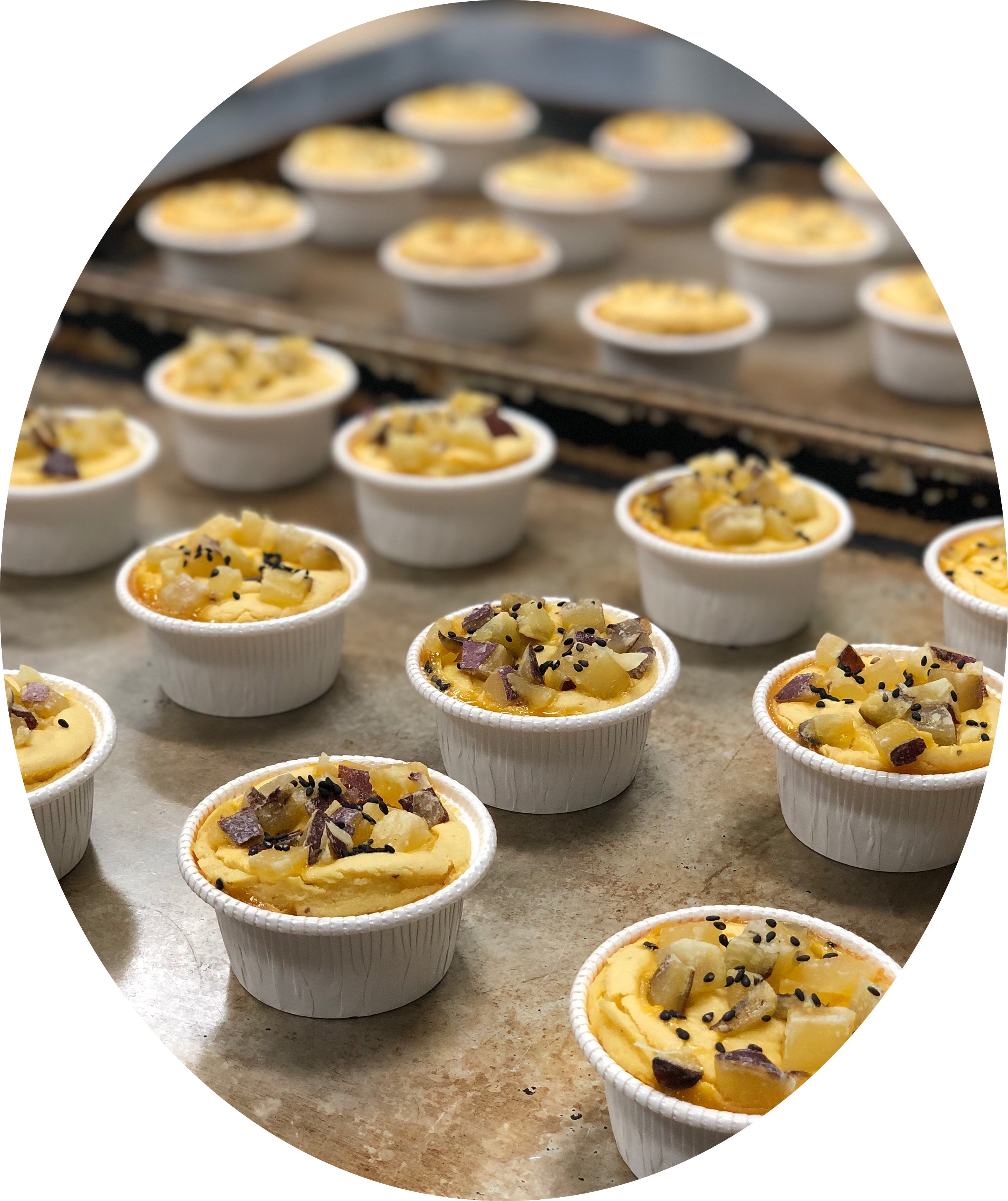 あわせて、スイートポテトケーキも焼き上がりました。一般にイメージされるスイートポテトの食感を、よりなめらかにしっとりと仕上げました。