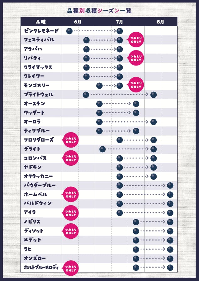 摘み取りができる品種の早見表を作成いただき