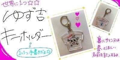 柚木美咲のキャラクター『ゆず吉』のイラストとお名前を書いたストラップ。