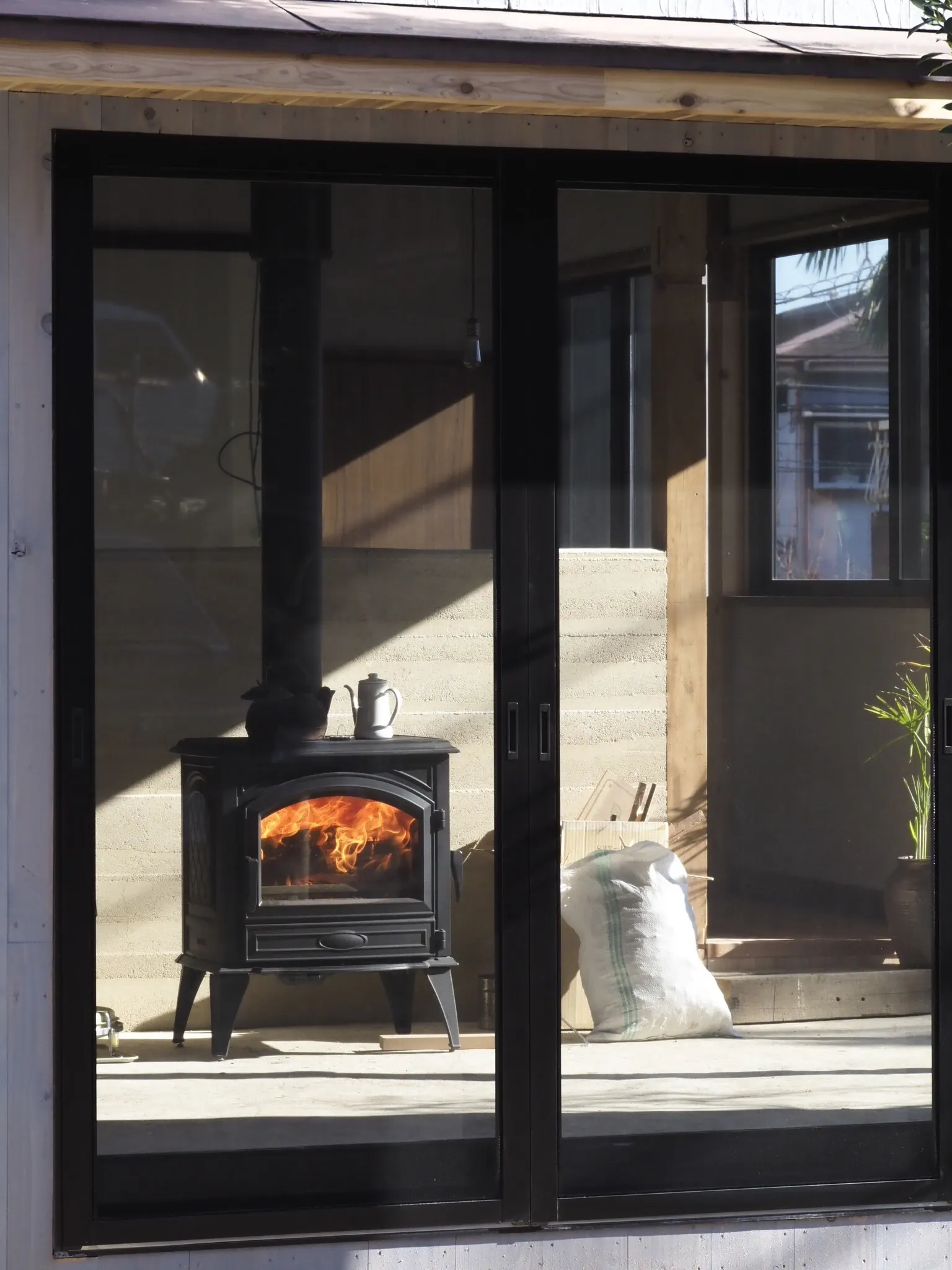 間取りを変えるために抜いた柱などの木材は、薪として活用しリノベーション時の廃棄物も減らします。