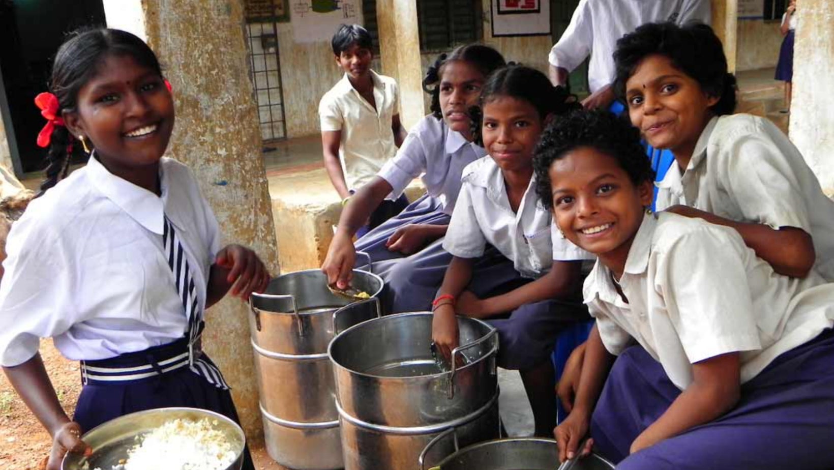 インドの教育、特に”ガバメントスクール”と呼ばれる公立学校は設備や教育施設が整っていないところが多数あり、給食がないのはもちろん、トイレ(特に女子トイレ)がない、教師が来ないといったケースもあります。2010年4月より法律で子供の無償義務教育が権利として定められ徐々に教育の現場は改善されつつあるものの、公立学校の環境は依然として悪く、貧しくても私立学校への進学を希望する人々が多いのが現状です。