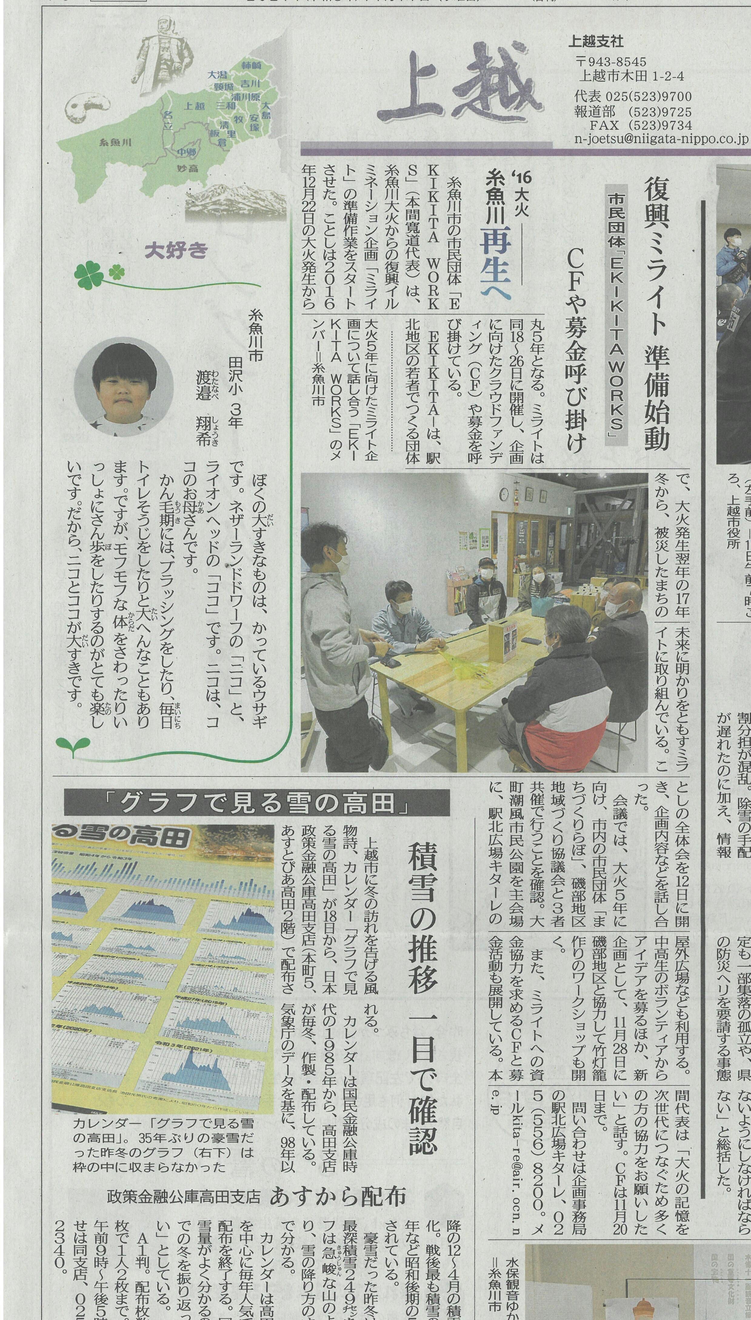11月17日の新潟日報に記事にしていただきました!!