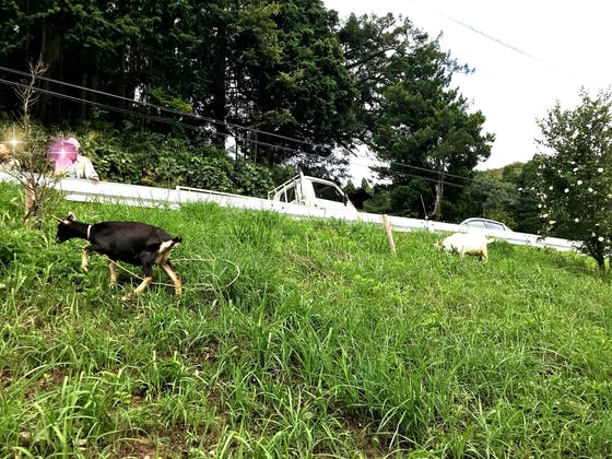 地域の方の斜面をお借りして除草作業を行いました。ヤギがいる事で、近所の方々が集まりとても和やかな場になりました♪