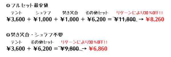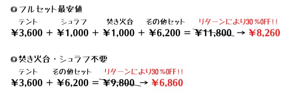 ※金額は予定している1泊分の料金で2泊目以降は半額、リターンの種類によってさらに30%OFFになります。