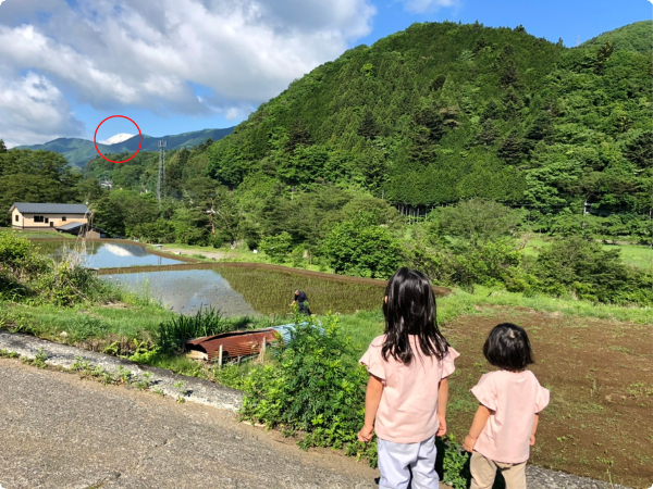 道志村名物(?)『ちょい見せ富士山』with 娘ズ