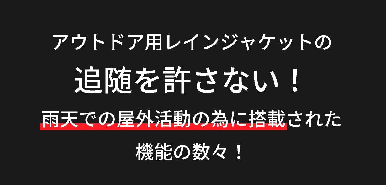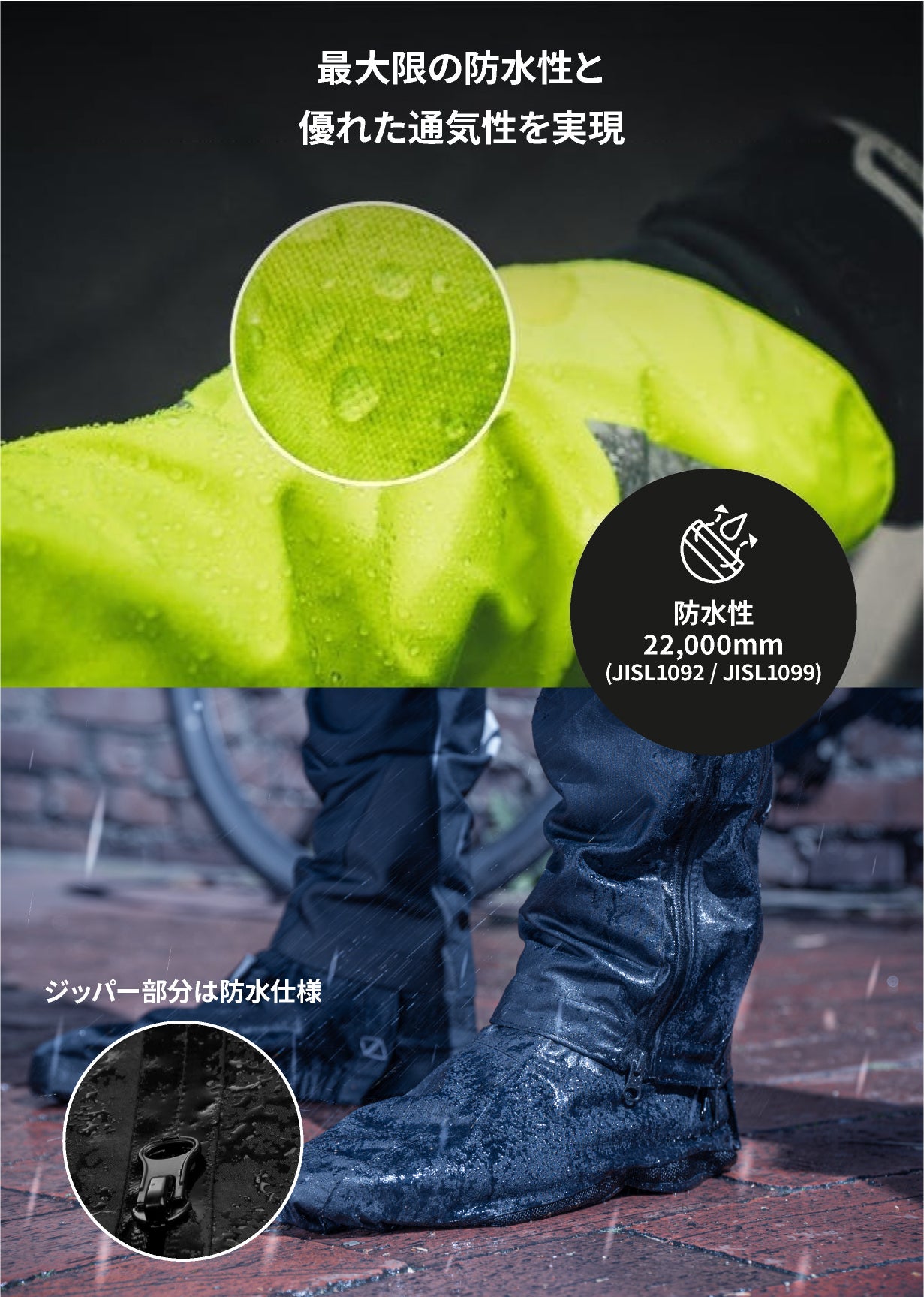 長時間の雨にさらされる前提で作られており、22.000mmの防水メンブレンを使用する一方、