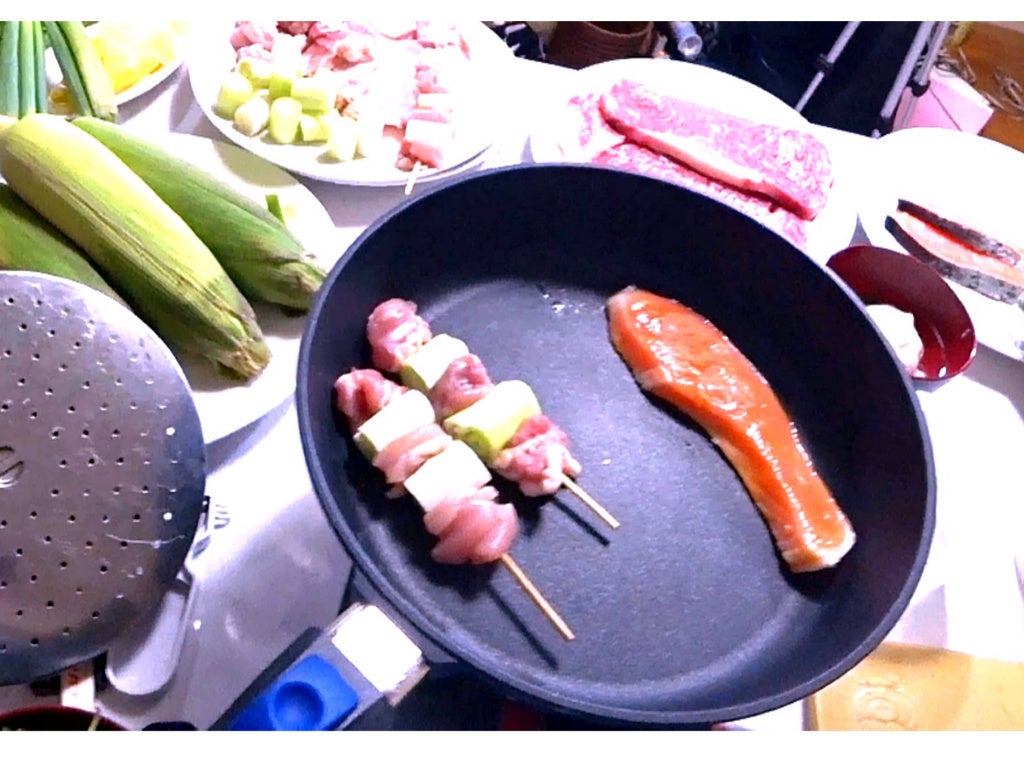 燃えない鍋なので、焼き鳥の串を刺したままフライパンで焼いても串は焦げて燃えません。