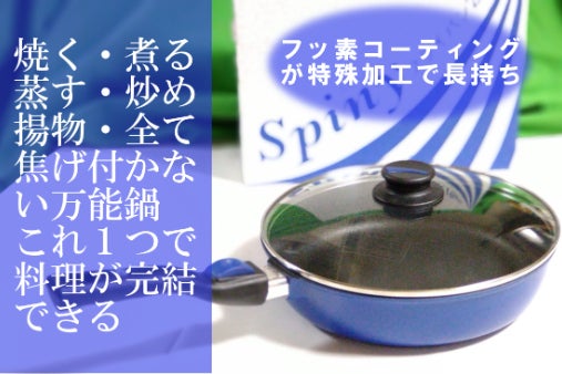 数あるお鍋でも、基本的に5つの焼く、煮る、蒸す、炒める、揚げるが1つの鍋で出来き、低火力で料理が可能な鍋は、ほとんどありません。このスピニーの鍋1つで何千種類もの料理にひろがっていきます。
