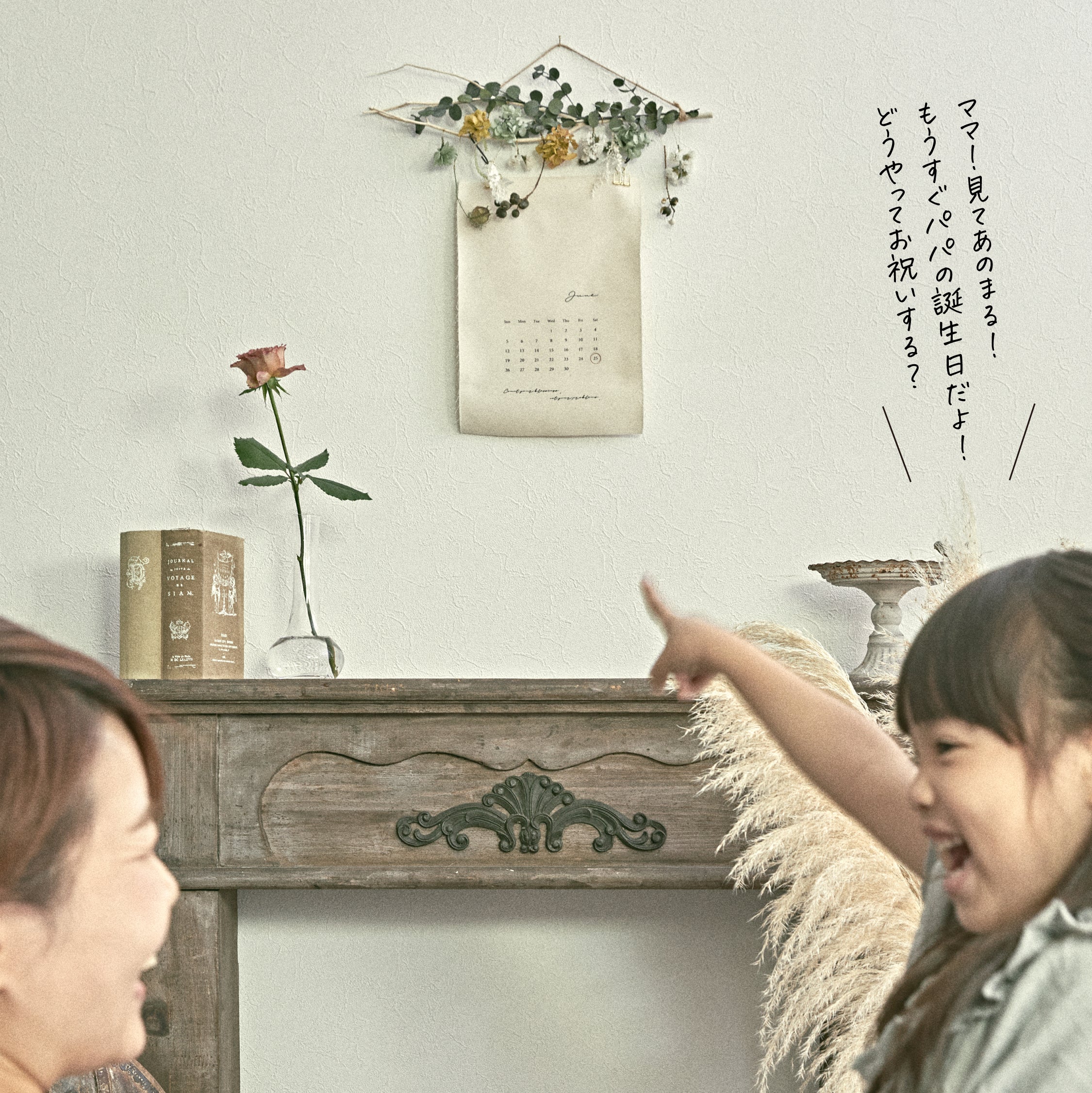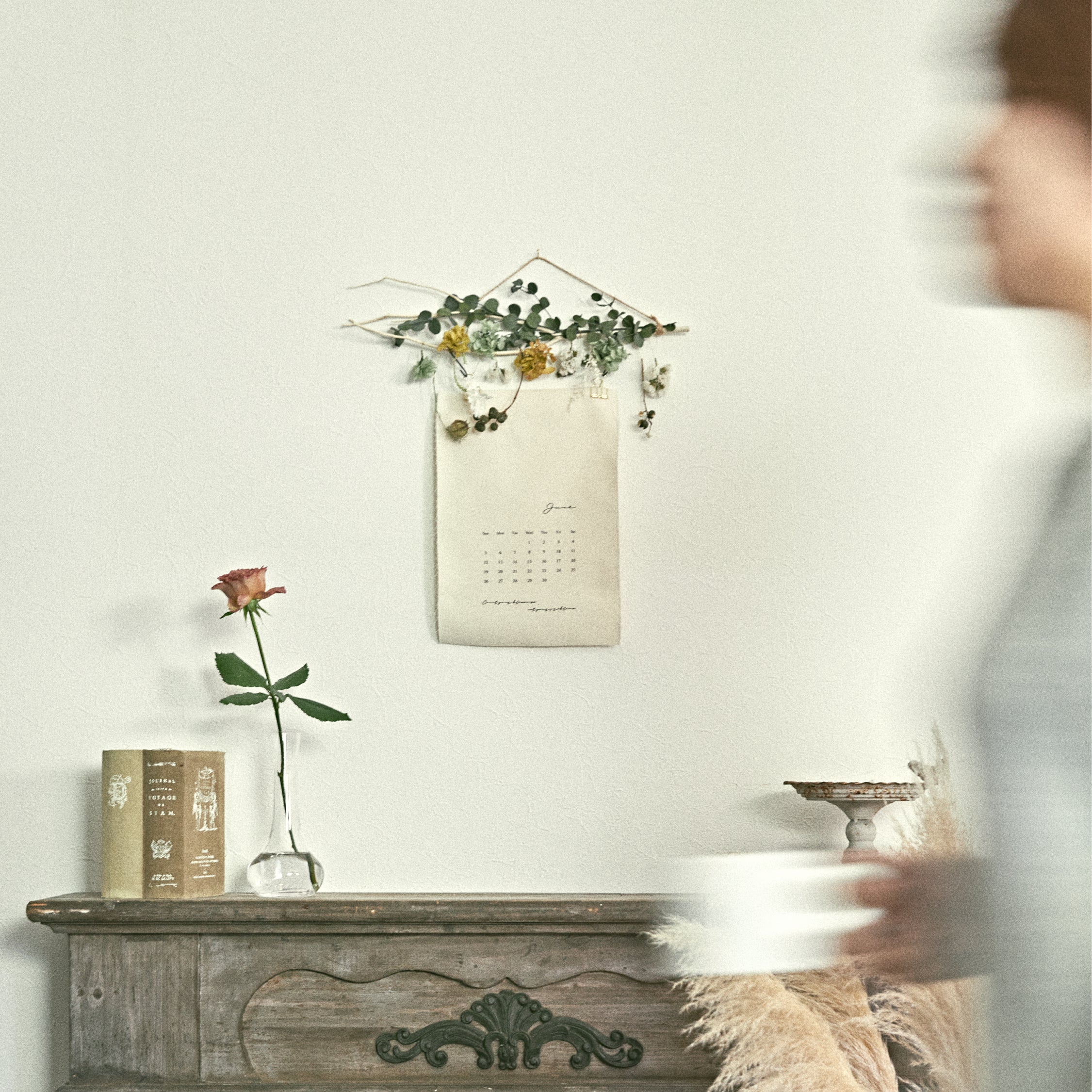 例えばドライフラワーと吊るして、インテリアとして飾れるカレンダーに。