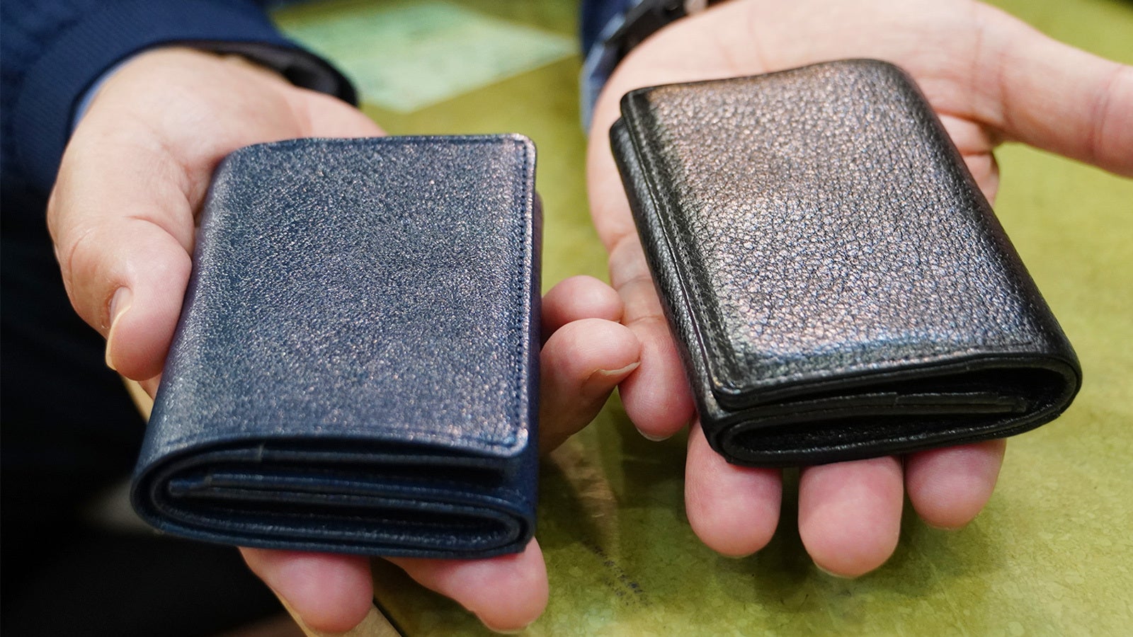 右は二宮さんが実際に使われているミニウォレット、左は新品のもの。