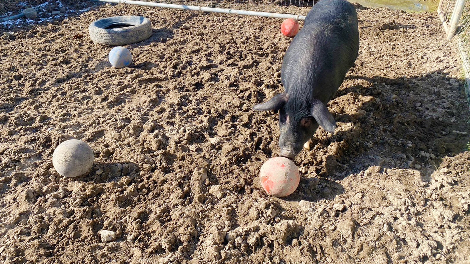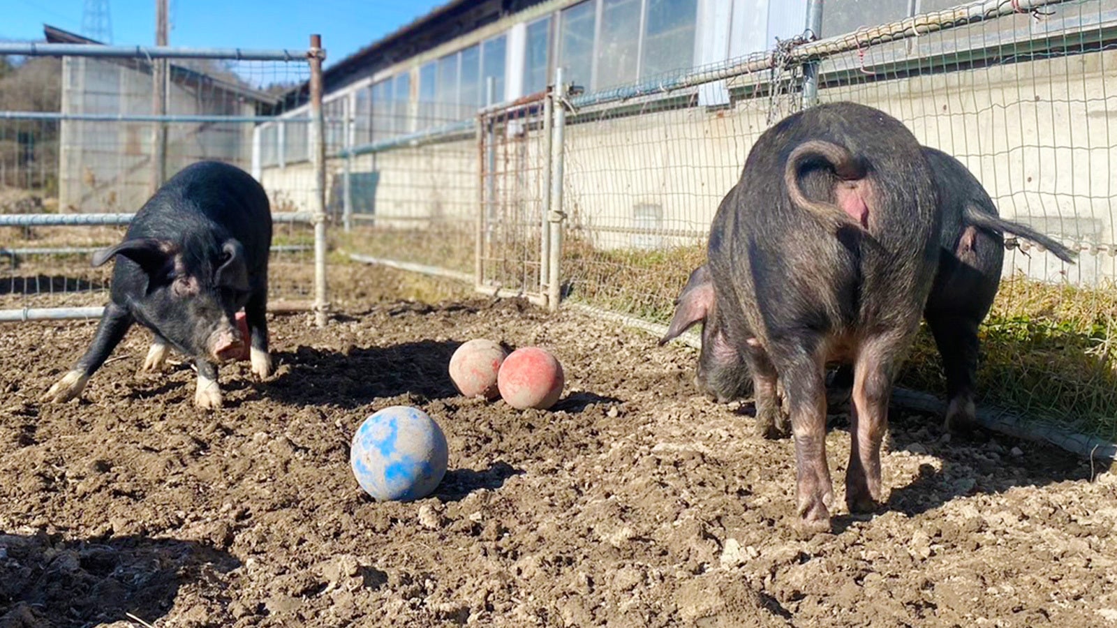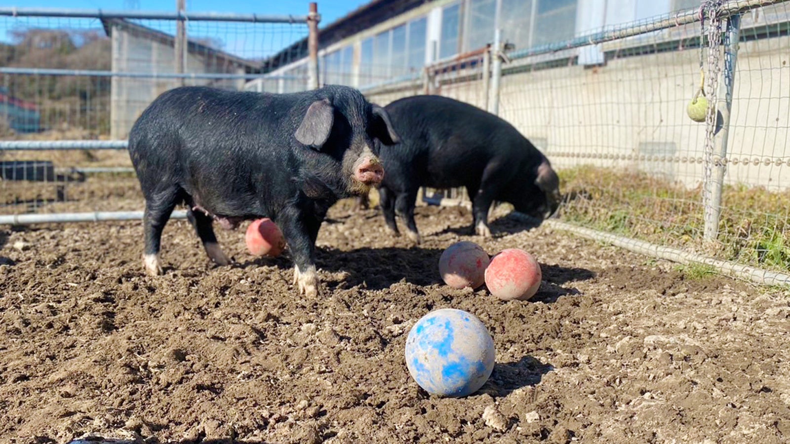 ホープフルピッグの養豚家、高橋希望さんから、豚さんがボールで遊ぶ様子が届きましたのでご紹介いたします。