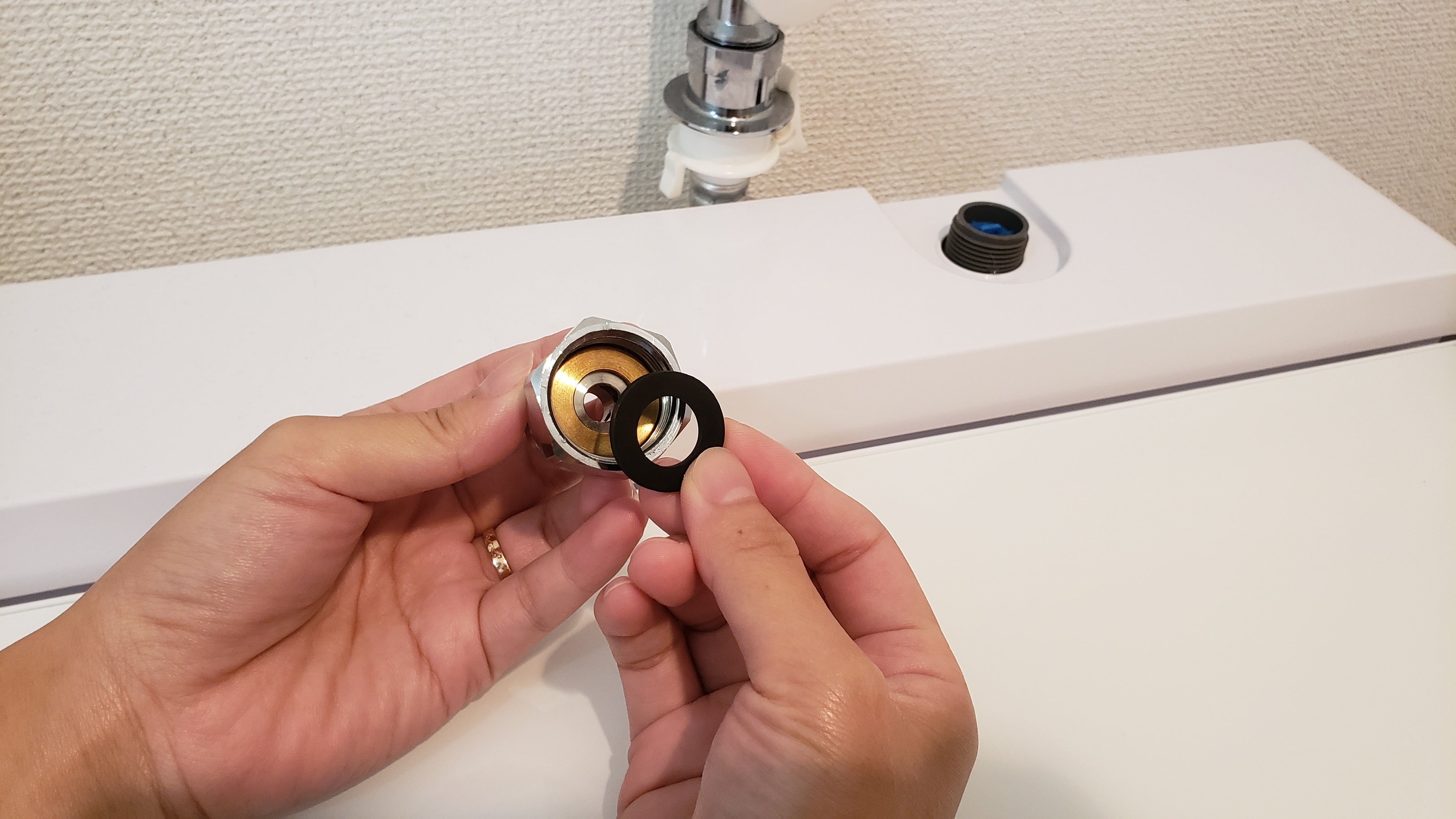 4.両方が装着できたら水を出し、水漏れがないのを確認できたら完了